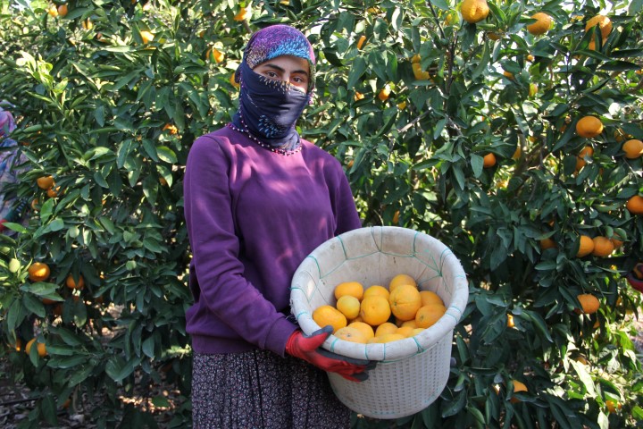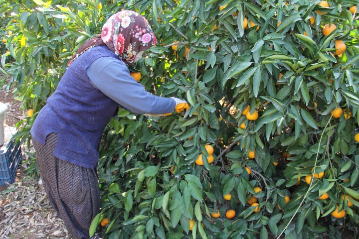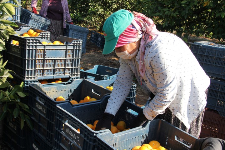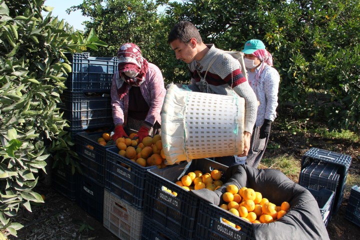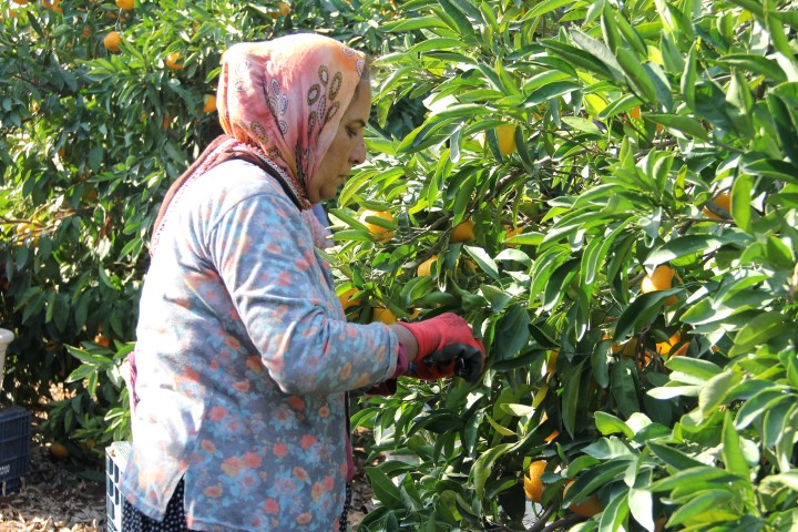 Mersin'in merkez Akdeniz ilçesine bağlı Kürkçü Mahallesi'ndeki narenciye bahçelerinde mandalina ve portakal hasadı yapan işçiler, sabah saat 04.30'da kalkıp 05.30'da yola düşüyor ve 07.00'de kesime başlıyor.