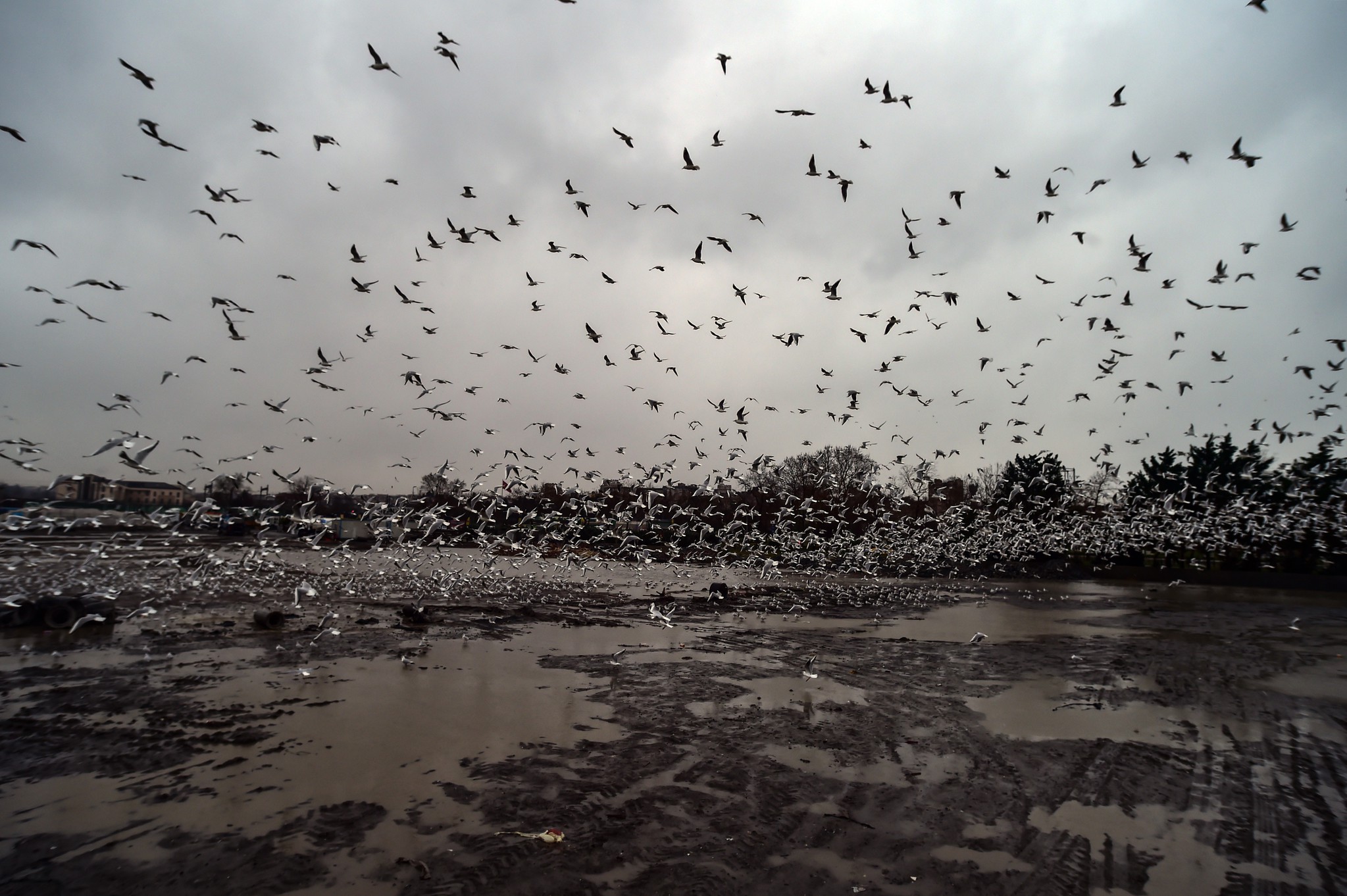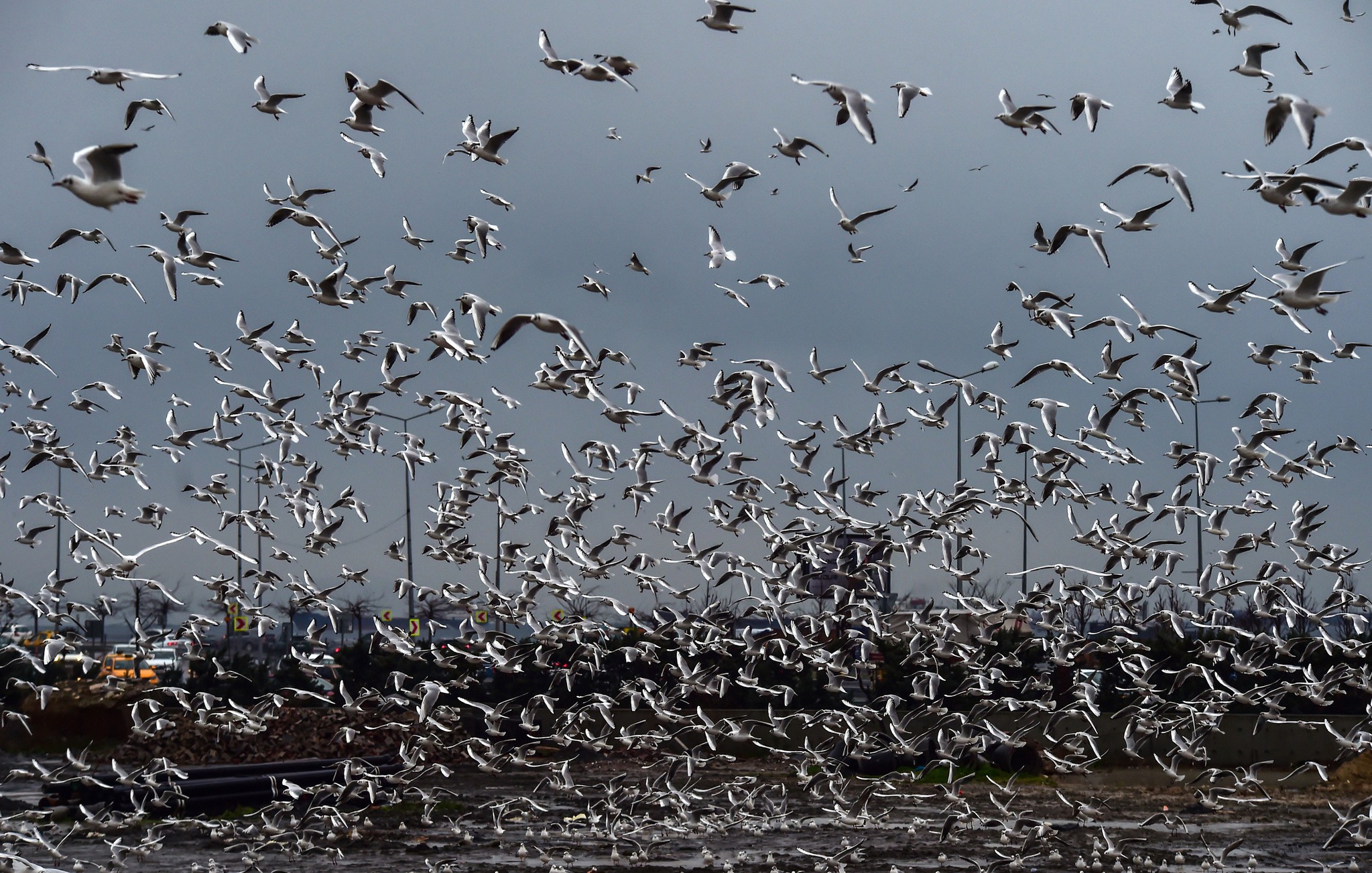 İstanbul'u etkisi altına alan şiddetli fırtına hayatı olumsuz etkilerken, martıların rüzgarda uçmakta güçlük çektiği anlar görsel şölen sundu.