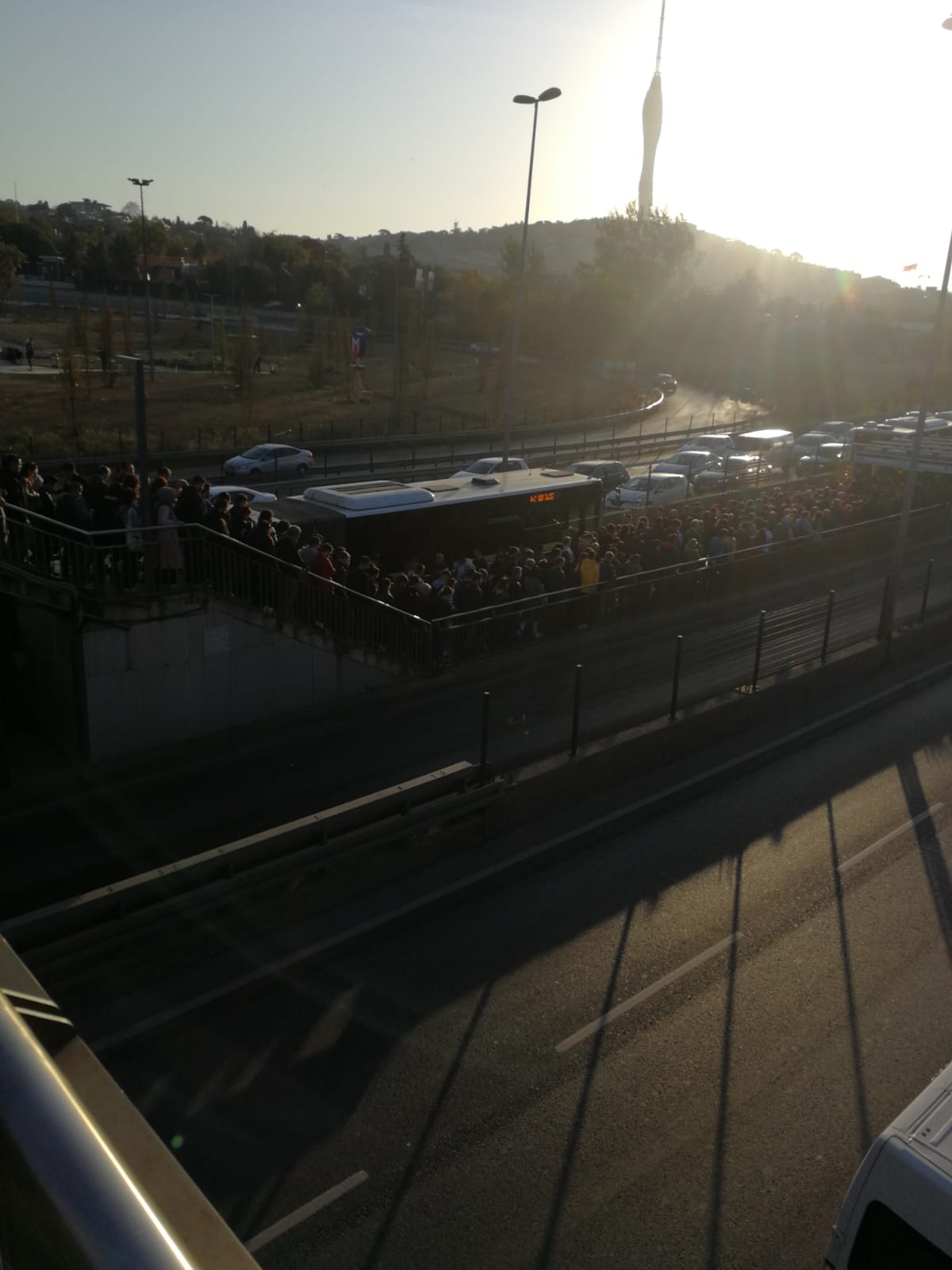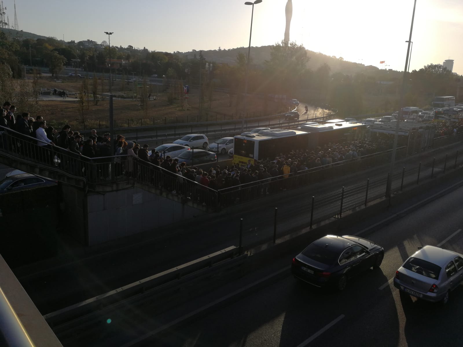 Sabah saatlerinde işe gitmek için metrobüs hattını kullanmak isteyen vatandaşlar, Altunizade'deki üst geçitte ve metro çıkışlarında uzun kuyruklar oluşturdu.
