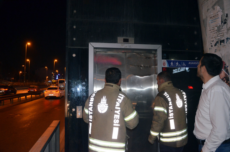 Avcılar'daki Şükrübey Metrobüs Durağı'nda asansör dün saat 21.30 sıralarında aşağı inerken aniden durdu. Cam kabininde 2'si bebek 3 kişinin bulunduğu asansörde kalanlar 45 dakika sonra kurtarıldı.
