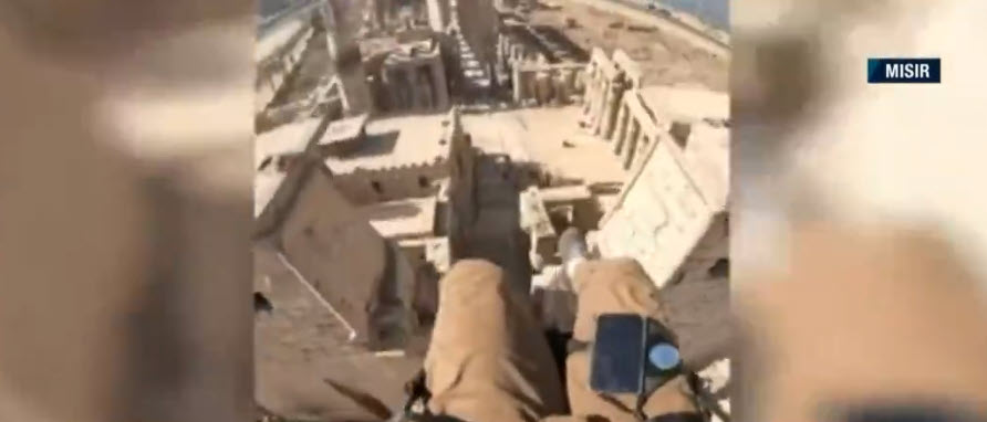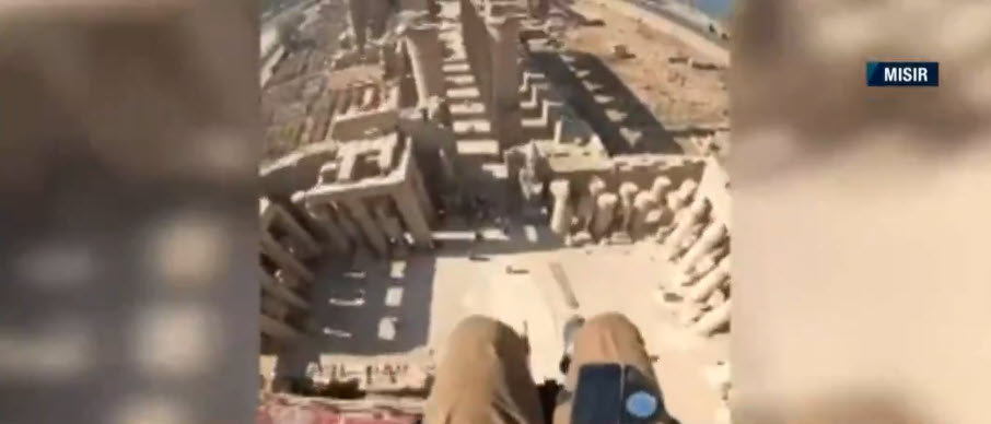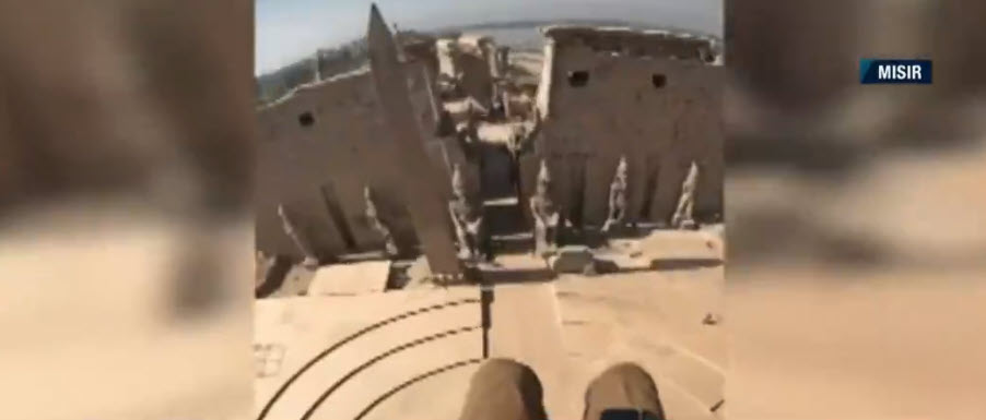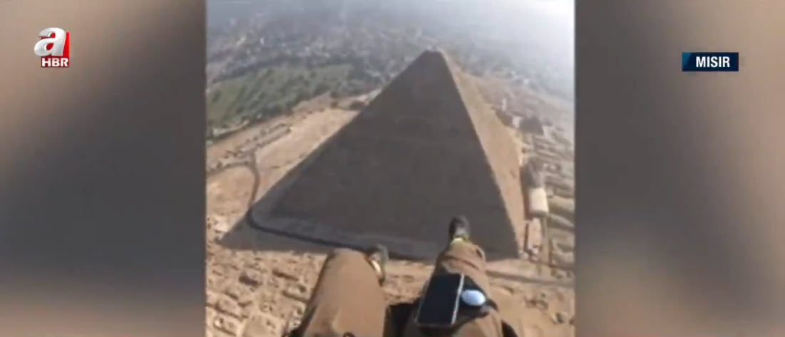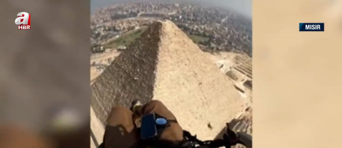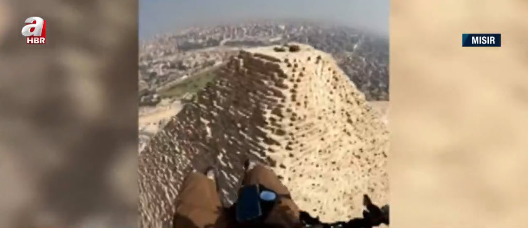 Mısır tarihinin sembolik yapıları üzerinde süzülen adamın piramite fazla yaklaşarak ölümden döndüğü bir an ise yürekleri ağza getirdi.