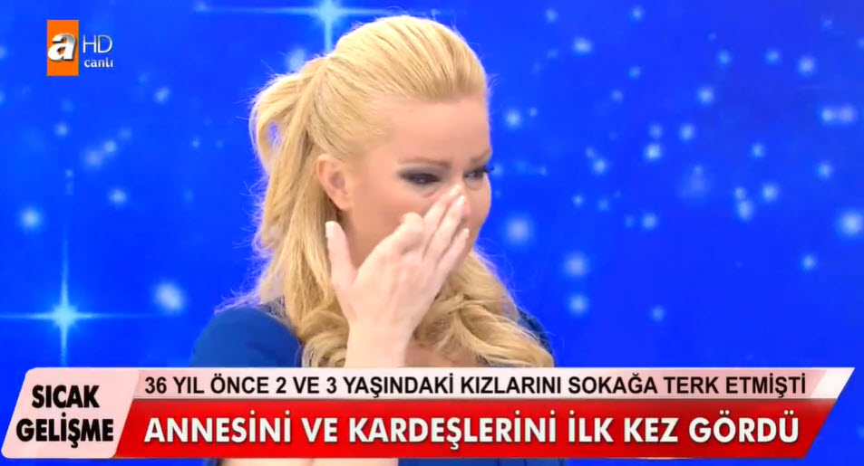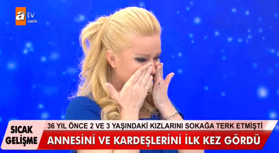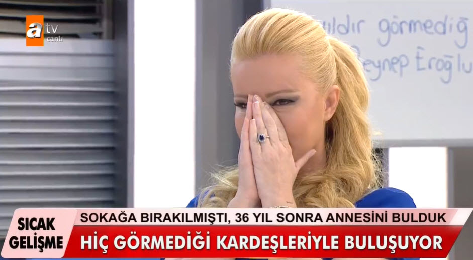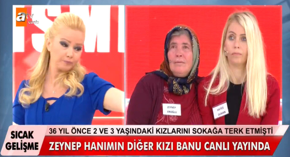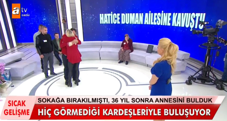 Müge Anlı son dakika gelişmesiyle canlı yayında gözyaşlarını tutamadı. 36 yıl önce soka terk edilen Hatice Duman, ATV ekranlarındaki Müge Anlı ile Tatlı Sert programıyla ailesine kavuştu.