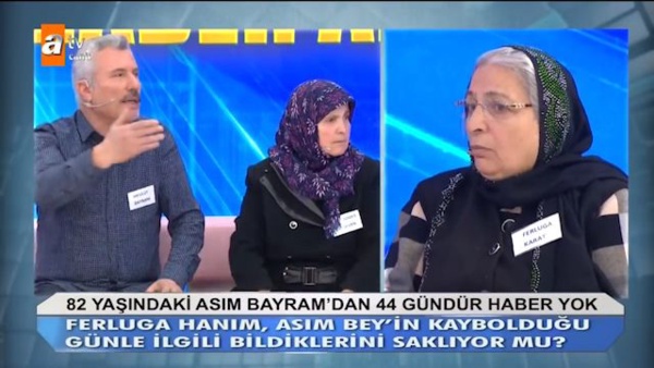 Müge Anlı ile Tatlı Sert programında Asım Bayram hakkında flaş bir gelişme yaşandı. 22 Ocak'tan itibaren haber alınamayan 82 yaşındaki Asım Bayram'ın eli Ferluga Hanım Müge Anlı canlı yayınında itiraflarda bulundu.