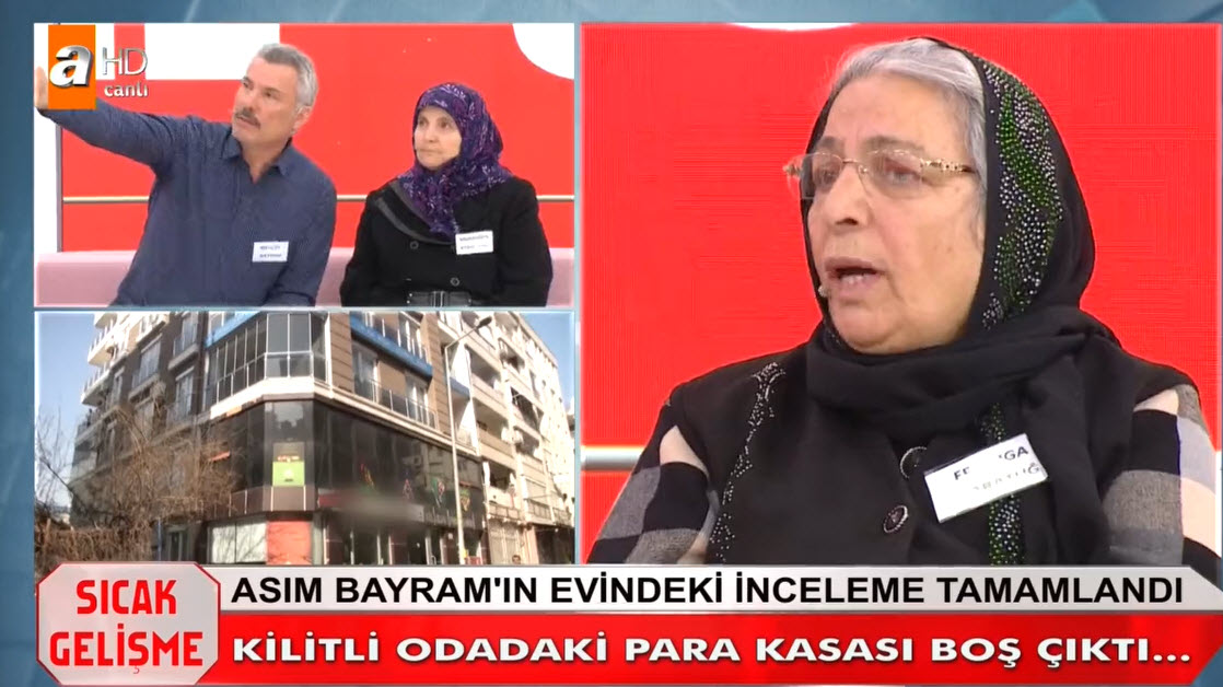 22 Ocaktan beri kayıp Asım Bayram'ı arama çalışmalarına devam ediliyor. ATV ekranların yayınlanan Müge Anlı ile Tatlı Sert programında oğlu Mevlüt Bayram'ın istediği ile kayıp olarak aranan Asım beyi arama çalışması canlı yayına gelen ihbar ve iddialar neticesinde cinayet soruşturulmasına dönüştü.
