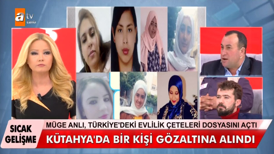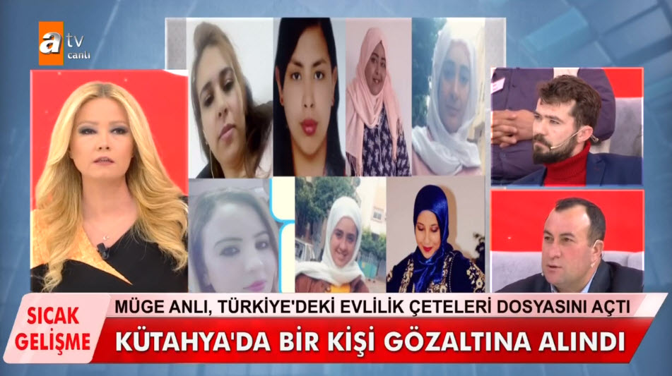 Müge Anlı ile Tatlı Sert programında geçtiğimiz hafta işlenen evlilik vaadiyle dolandırılanların sayısı giderek arttı. Müge Anlı programına gelerek canlı yayında nasıl dolandırıldıklarını anlatan mağdurların ardından programa çok sayıda ihbar geldi. Müge Anlı'nın bugünkü canlı yayınında olayla ilgili şok eden bir gelişme yaşandı. Ülkenin her yerinden gelen mağdurların anlattıkları Fas'tan yüzlerce sahte gelinin getirildiğini ortaya çıkardı. Programda anlatılanları ihbar kabul eden Kütahya İl Emniyet Müdürlüğü ve Kütahya İl Jandarma Komutanlığı sahte evlilik dolandırıcılığıyla ilgili harekete geçti. Çete lideri olduğu öne sürülen Mustafa Şimşek canlı yayında gözaltına alındı. İşte 16 Ocak 2020 Müge Anlı canlı yayınında yaşananlar...
