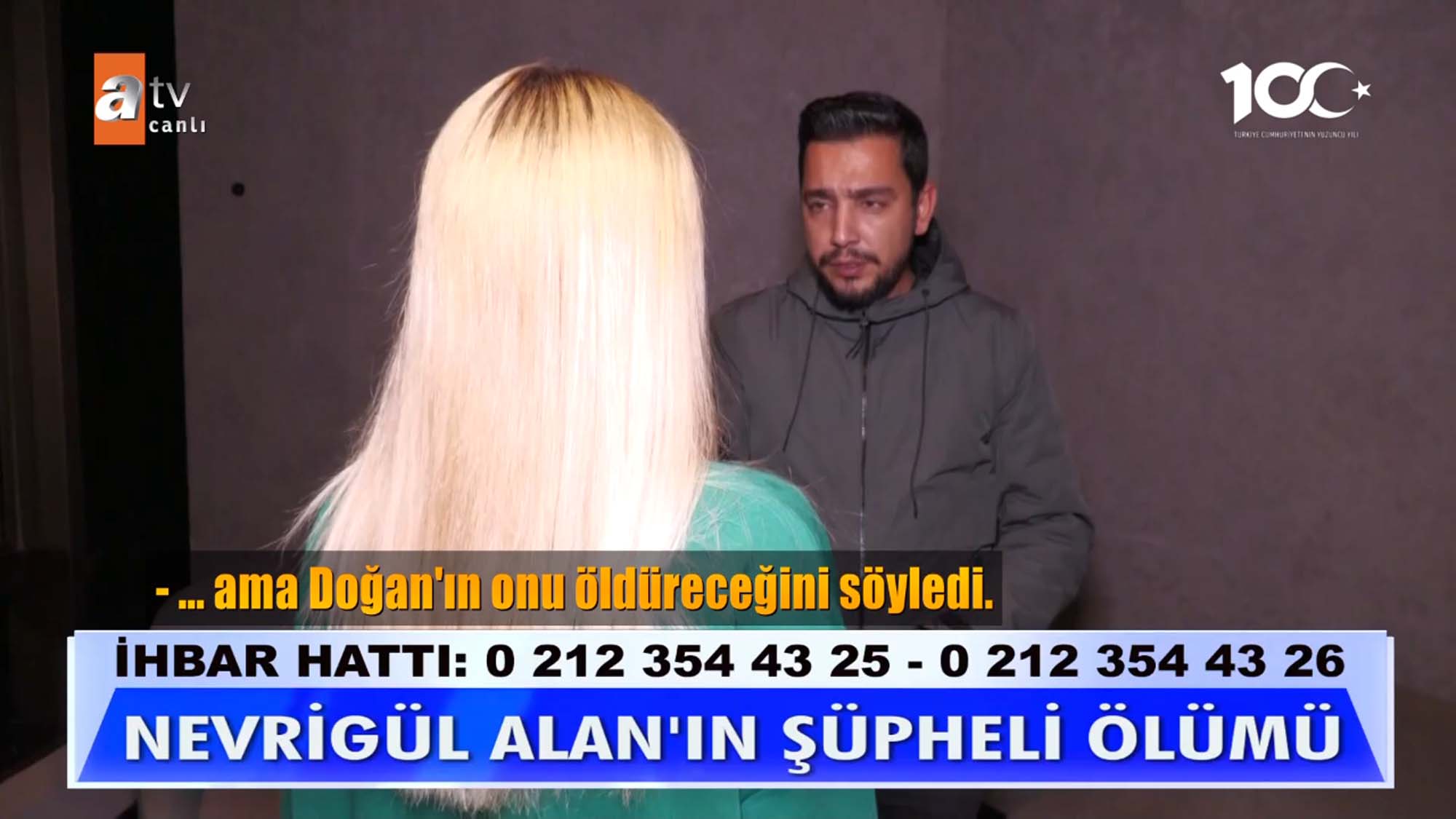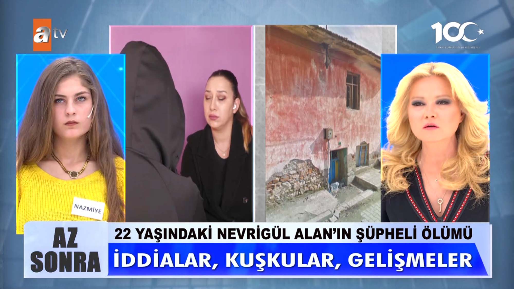 Müge Anlı ile Tatlı Sert programında kayıp olarak aranan Nevrigül Alan, 47. günde bir çiftçi tarafından zeytinlikte bulunmuştu. Savcılığın araştırması sonucu 2 çocuk annesinin canına kıydığı kesinleşirken bulunan yeni kayıtlarla dosyanın yeniden açılabileceği belirtildi. Nevrigül'ün çocukluk arkadaşı olduğunu söyleyen Betül isimli kişinin söyledikleri dosyanın seyrini değiştirdi. Nevrigül'ün kaybolmadan önce Doğan ve eşi görüşeceğini ifade eden tanık, "Doğan, Nevrigül'ü istismar ediyordu." dedi. Nazmiye'nin Nevrigül ve Barış'ı kıskandığını söyleyen Betül Hanım, "Doğan'ın elinde Nevrigül'ün videoları vardı" şeklinde konuştu. Bu iddiaların ardından Nazmiye'nin de benzer görüntüleri olması nedeniyle ablasının cinayetinin ardından sessizliğe gömülmüş olabileceği akıllara geldi.