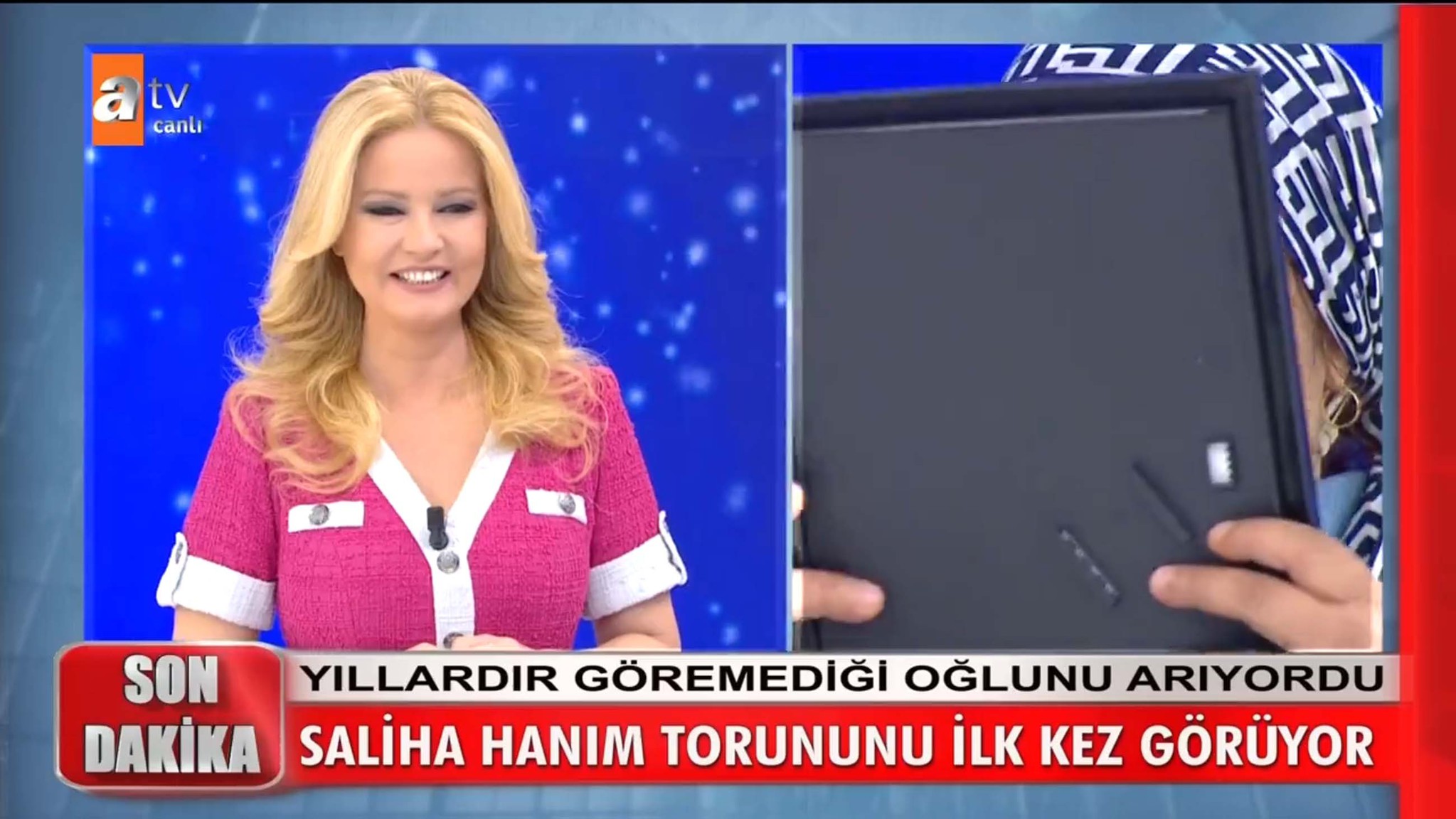 Oğlunun evlendiğini ve bir torunun dünyaya geldiğini de ilk kez canlı yayında öğrenen Saliha Hanım duygusal anlar yaşadı.