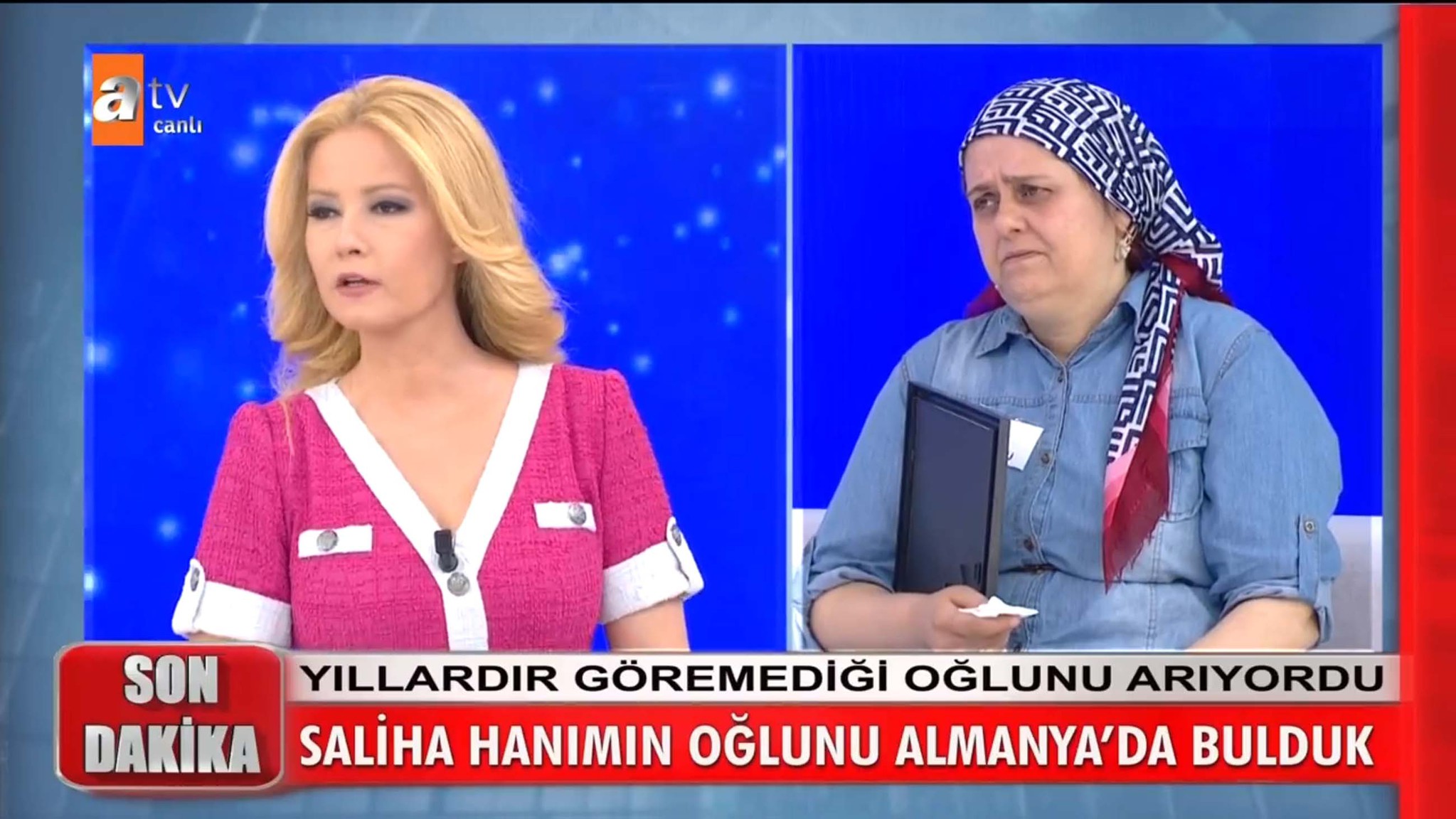 Müge Anlı'nın bugünkü canlı yayınında herkesi duygulandıran bir kavuşma yaşandı. 14 yaşında Almanya'da zorla evlendirilen ve eşi tarafından Türkiye'ye gönderildikten sonra çocuğu kendisinden koparılan Saliha Barutçu, yıllardır görmediği oğlu Zülfikar Şah Yılmaz'ı bulunması için Müge Anlı ve ekibinden yardım istedi.