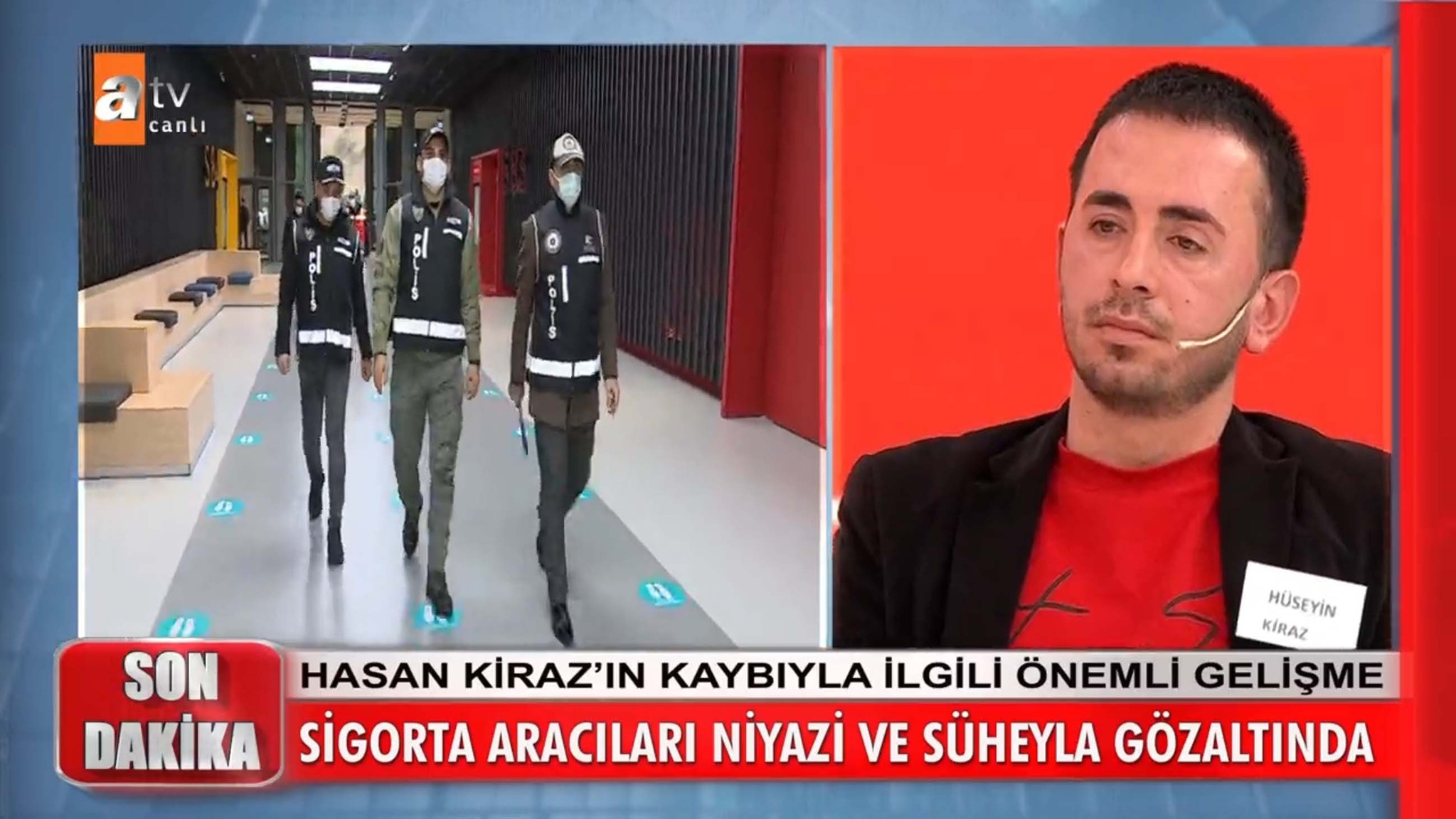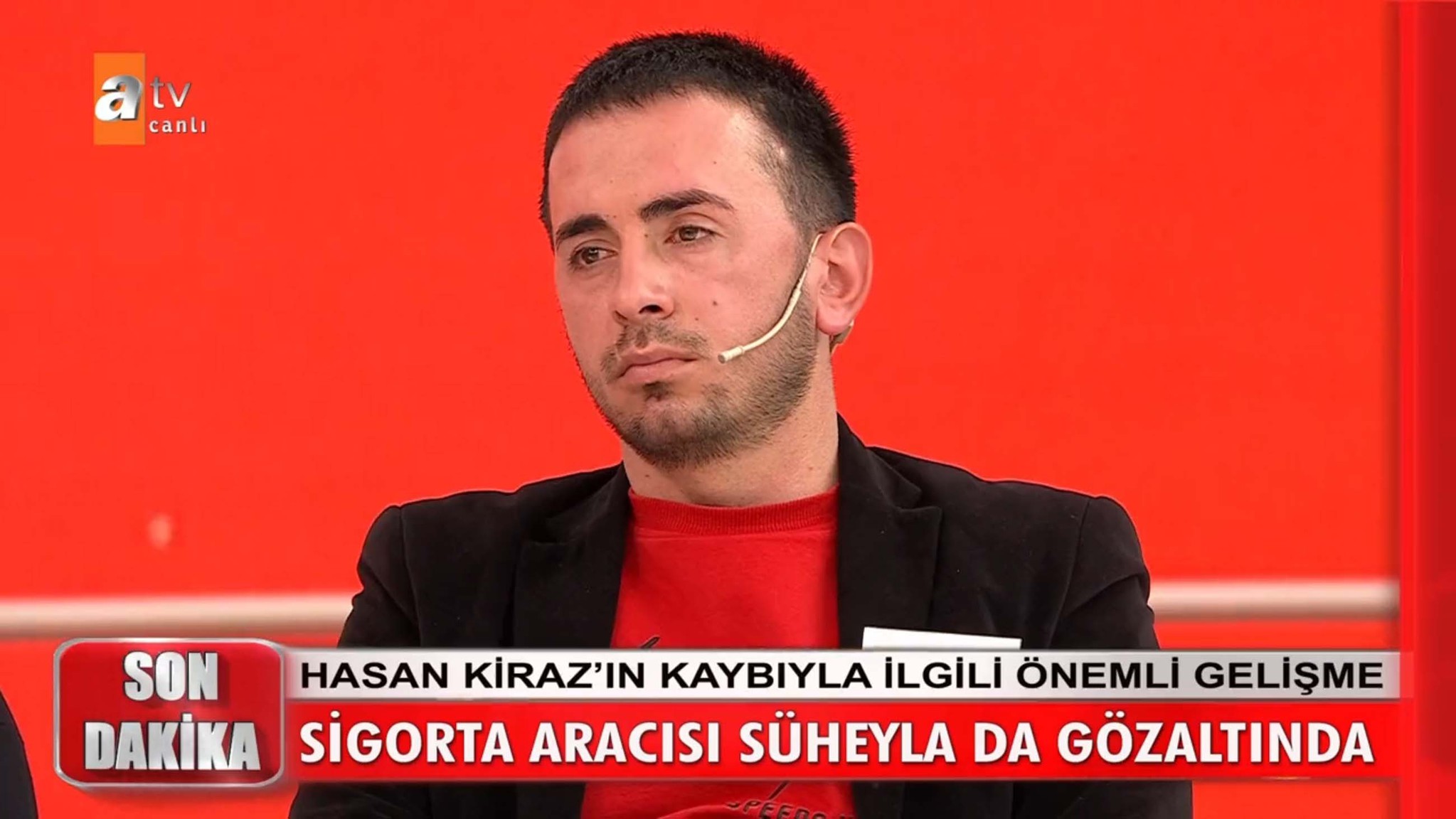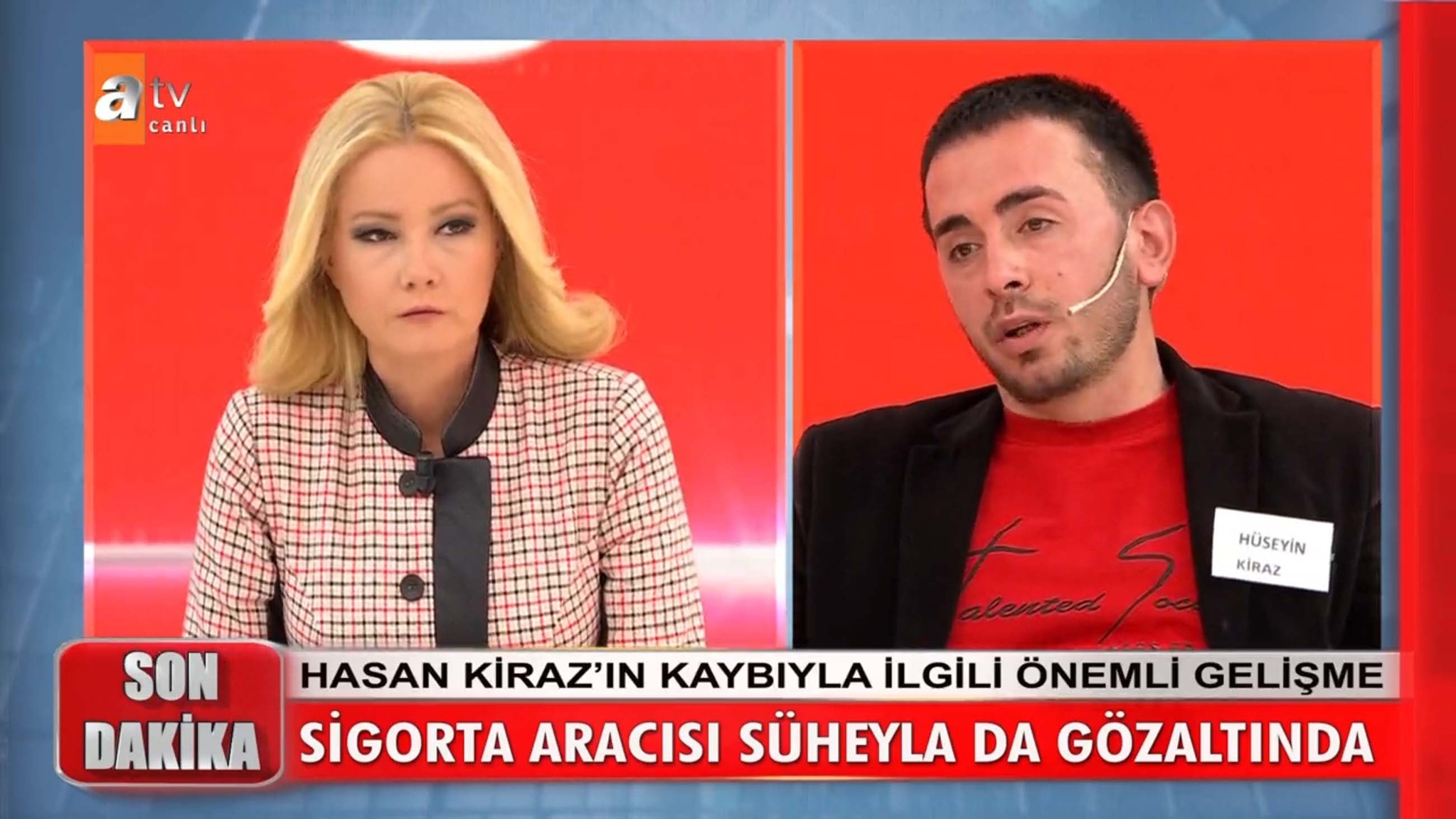 23 yaşındaki Hasan Kiraz 11 Mayıs 2017'de Muğla Dalaman'da kaybolmuş ve ailesi Hasan'ı bulabilmek için Müge Anlı ve ekibinden yardım istemişti. Geçirdiği trafik kazasından bedensel ve zihinsel engeller kalan gencin yüklü kaza tazminatı nedeniyle ortadan kaldırıldığından şüpheleniliyordu. Kaybından 3 yıl 8 ay sonra Hasan Kiraz olayında şüpheli olan sigortacı dahil 13 kişi gözaltına alınmıştı. Müge Anlı yayında yaşananları aktarırken abi Hüseyin Kiraz, canlı yayına gelen polis ekipleri tarafından gözaltına alındı.