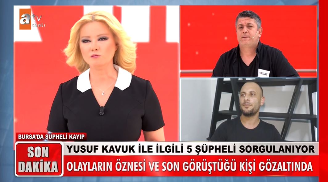 Müge Anlı, canlı yayında Yusuf Kavuk'un kaybına ilişkin 5 kişinin gözaltına alındığını duyurdu. Bursa İl Emniyet Müdürlüğü'ne Asayiş Şube Müdürlüğü'ne bağlı ekipler tarafından gerçekleştirilen gözaltılarda; Yusuf Kavuk'un sevgilisi olduğu bilinen Derya Altun, Derya Altun'un annesi ve kız kardeşi, Yusuf Kavuk'un son görüştüğü kişi olan Harun Ateş ve Harun Ateş'in kız arkadaşı olduğu iddia edilen kişi gözaltına alındı.