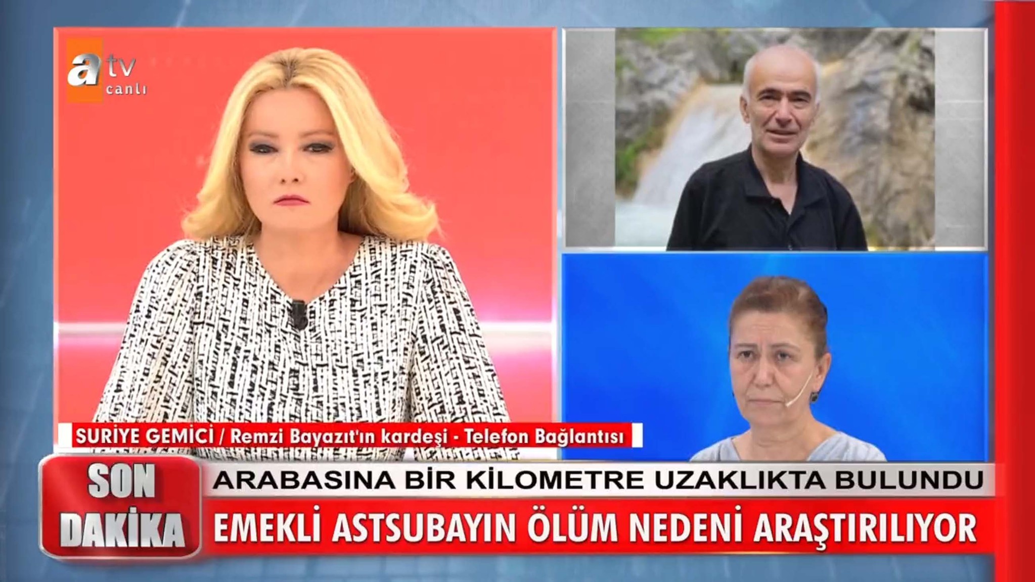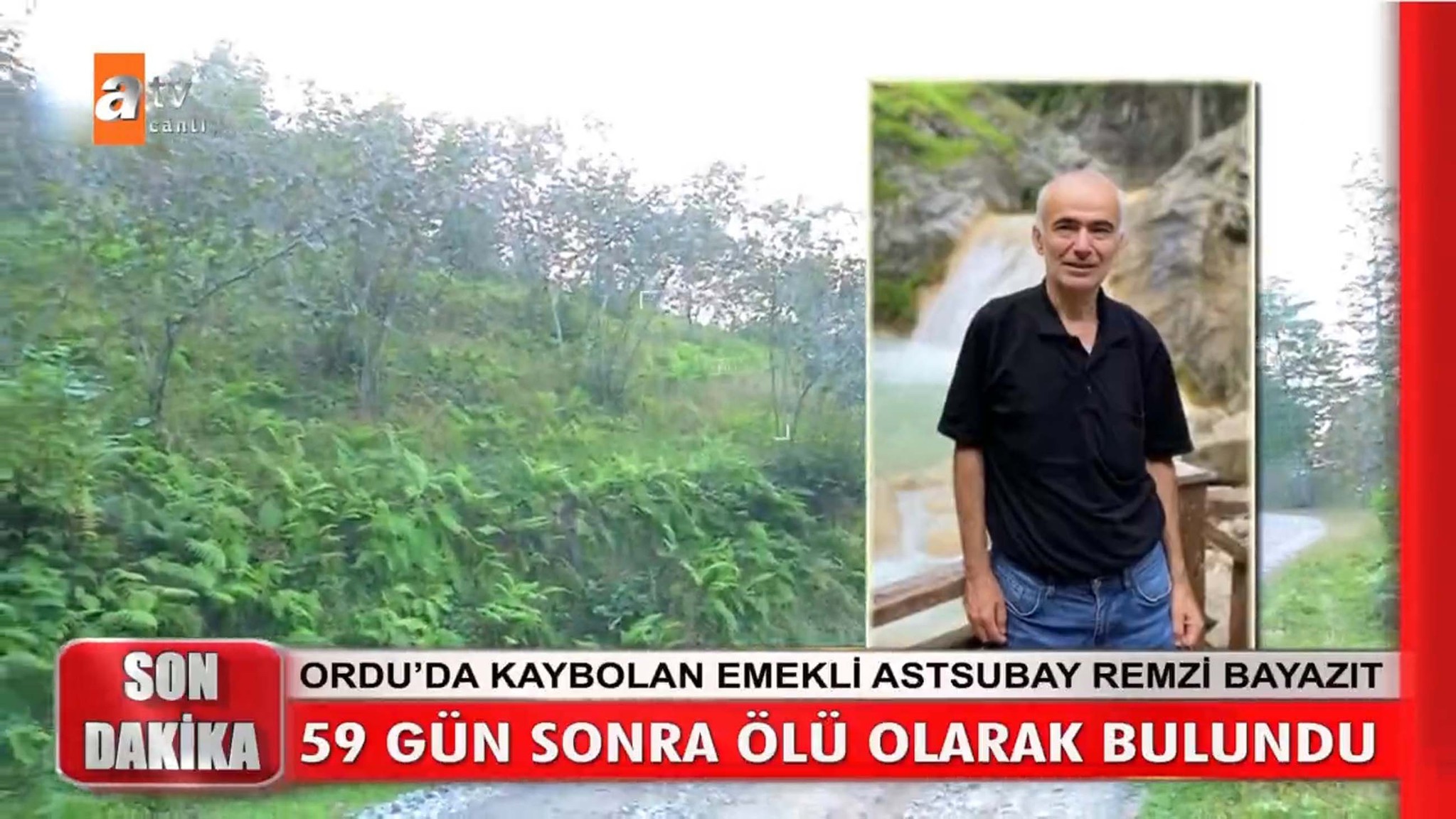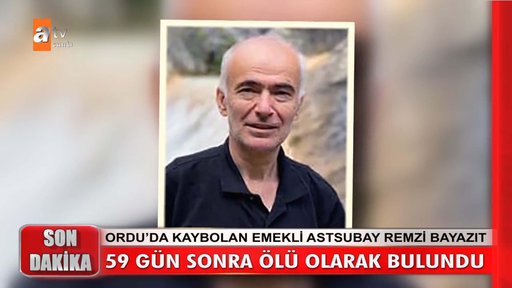 Ordu'da yaşayan 58 yaşındaki emekli astsubay Remzi Bayazıt, eşiyle yaşadığı tartışma sonrası 4 Ekim günü evinden çıkmış ve bir daha kendisinden haber alınamamıştı. Günlerdir kardeşinden haber alamayan Suriye Gemici ve arkadaşları Remzi Bayazıt' bulabilmek için Müge Anlı ve ekibinden yardım istemişti. Remzi Bey'in kaybından 4 gün sonra Gökömer köyü yakınlarında aracı bulunmuş, jandarma ekipleri tarafından arama çalışmaları başlatılmıştı. Kaybından 59 gün sonra Remzi Bayazıt'tan kötü haber geldi. İşte Müge Anlı canlı yayınında yaşanan son dakika gelişmesi...