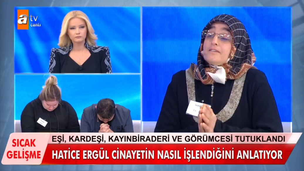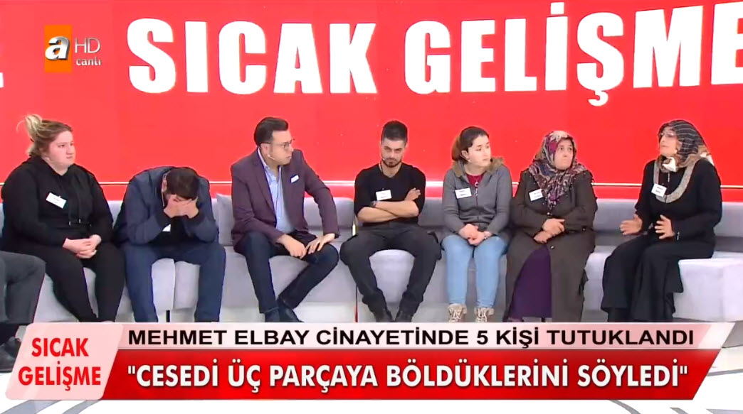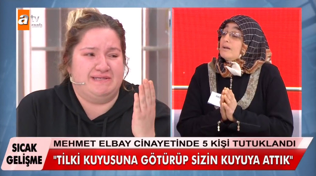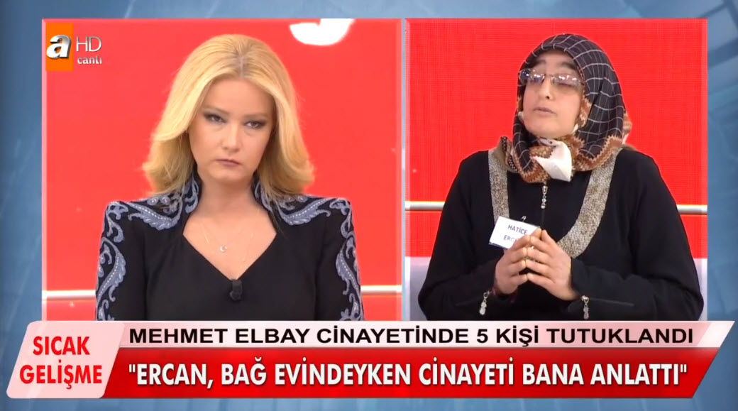 Dün Zeynep Ergül'ün evinde yapılan arama sonrası Mehmet Elbay'a ait olduğu tahmin edilen kemik parçaları bulundu. Yaşanan gelişme sonrası Zeynep Ergül tutuklanarak cezaevine gönderildi. Böylece Mehmet Elbay olayında tutuklu sayısı 5'e çıkmış oldu. Dün yaşanan gelişmelerin ardından bugünkü canlı yayına katılan Hatice Ergül'ün anlattıkları kan dondurdu. Yine bugünkü yayında Elbay'ın önce öldürüp sonra kemiklerini üç ayrı yere gömdükleri ortaya çıktı. Hatice Ergül her şeyi canlı yayında bir bir itiraf etti.