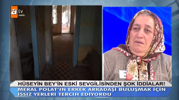 Müge Anlı'da Meral Polat olayında tüyler ürperten açıklamalar yapıldı. Günlerdir haber alınamayan Meral Polat'ın sevgilisi Hüseyin beyin eski sevgilisi konuştu. Müge Anlı'ya Meral Polat gerçekleri için bağlanan genç kadın kan donduran ifadeler kullandı. Hüseyin bey hakkında konuşan kadın, Müge Anlı'da Meral Polat olayının aydınlatılması için yardımcı olmak istediğini söyledi.
