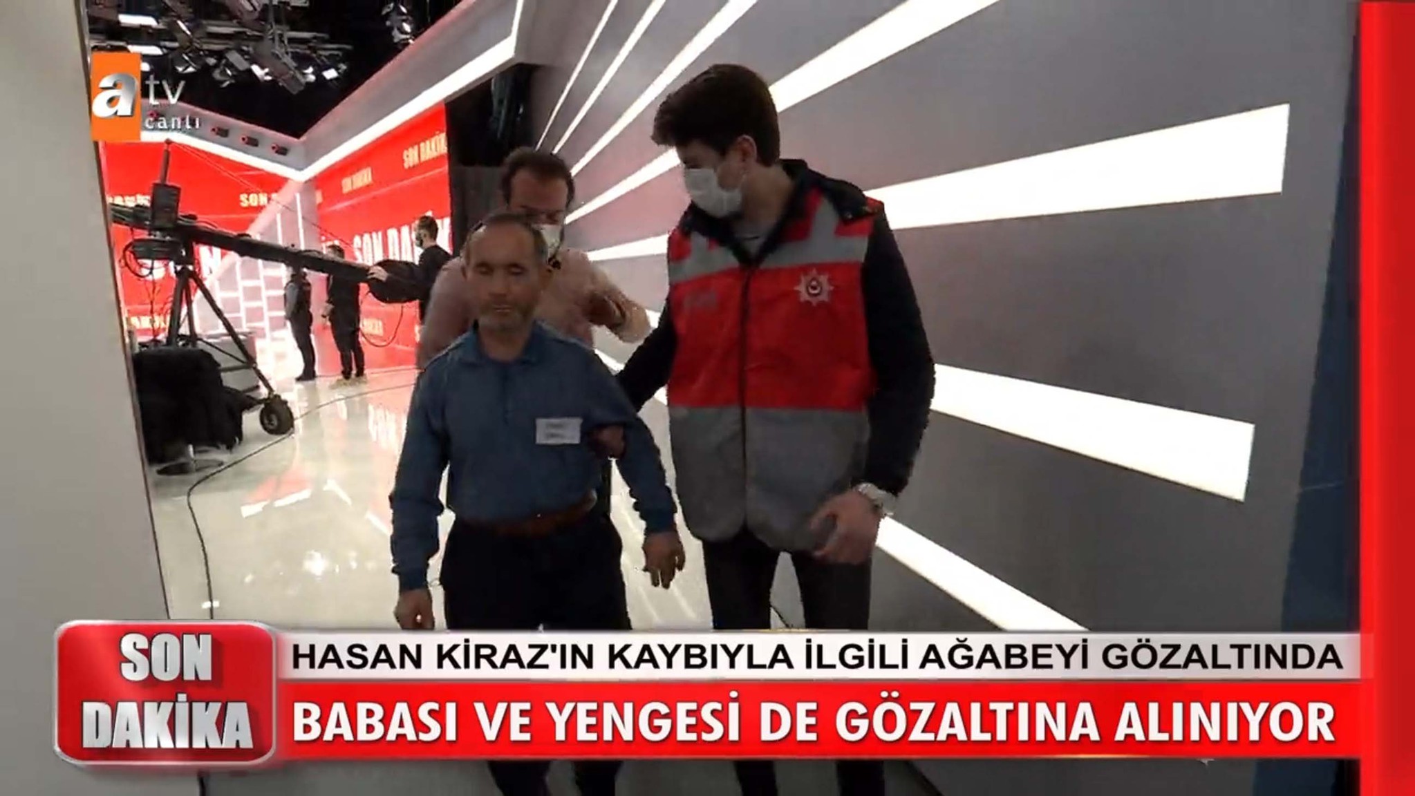 11 Mayıs 2017'de ortadan kaybolan Hasan Kiraz olayında bir gözaltı daha yaşandı. Kiraz'ın geçirdiği trafik kazasından bedensel ve zihinsel engeller kalan gencin yüklü kaza tazminatı nedeniyle ortadan kaldırıldığından şüpheleniliyordu. Kaybından 3 yıl sonra şüpheli sigortacı dahil 13 kişinin gözaltına alınmasının ardından dün abi Hüseyin Kiraz gözaltına alınmıştı. Bugün tekrar Müge Anlı yayınına gelen polisler, Hasan Kiraz'ın babası ve yengesi Merve Kiraz'ı gözaltına aldı. Polisleri stüdyo girişinde gören yenge Merve Kiraz sinir krizi geçirdi.
