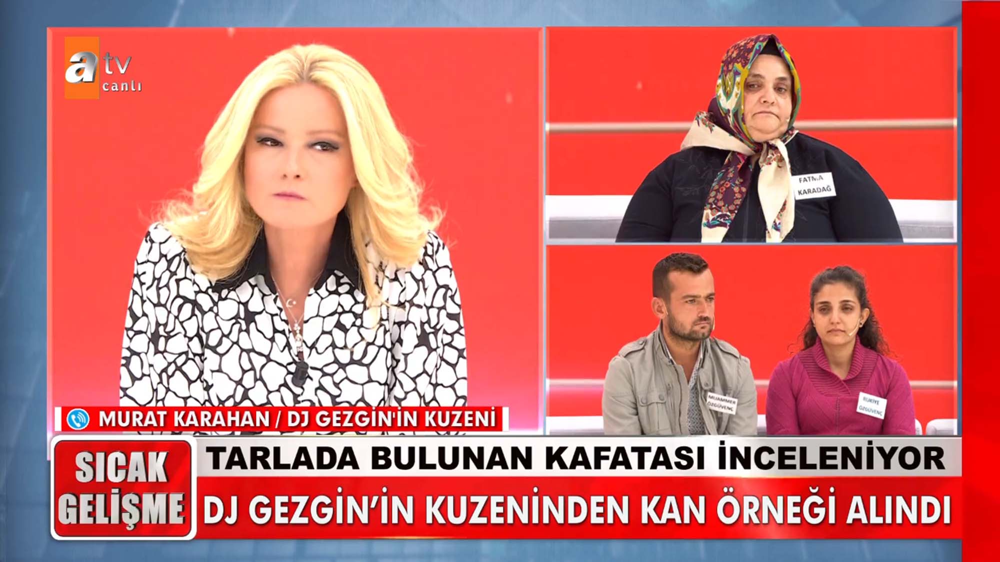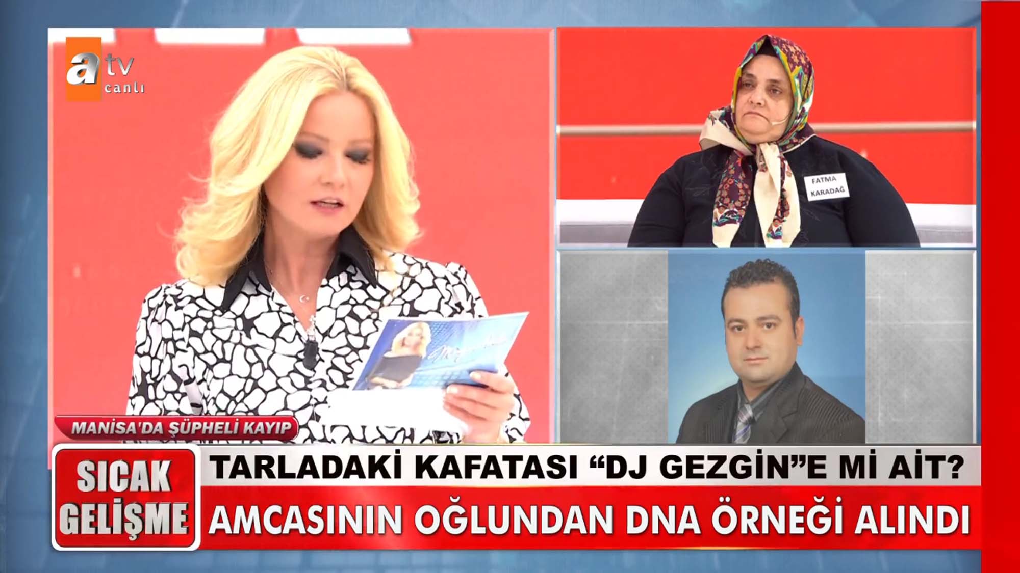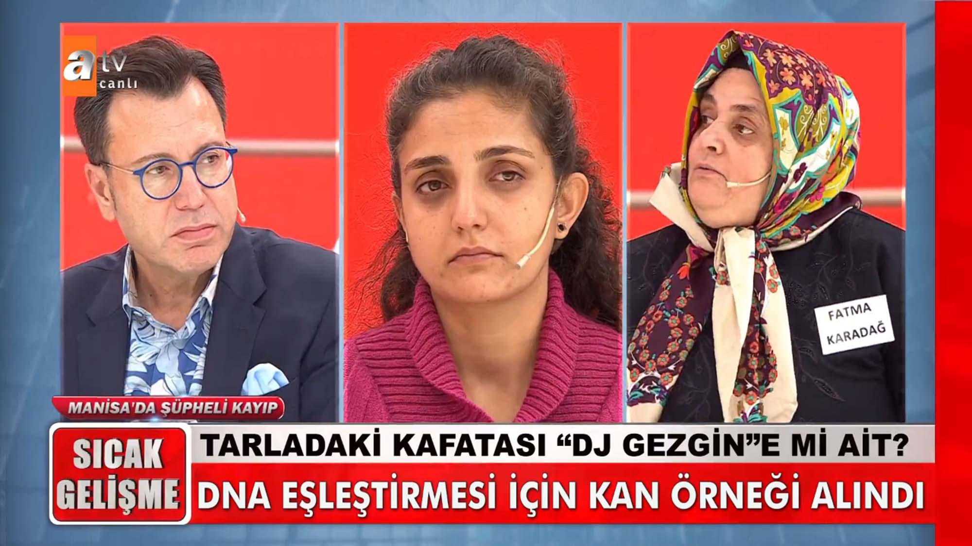 Müge Anlı ile Tatlı Sert programına katılan Fatma Karadağ, eski sevgilisi Cemal'in kardeşi Mehmet Karahan'ı öldürdüğünü ileri sürdü. DJ Gezgin olarak da tanınan Karahan'ın cansız bedeniyle günlerce aynı evde kaldıklarını, sevgilisi Cemal'in kokmasın diye her gün yıkadığını ve oda parfümü sıktığını ileri sürdü. Fatma Karadağ ile ilgili canlı yayını birçok ihbar yapılırken Manisa Turgutlu'da bir tarlada insana ait kafatası bulunduğu haberi bomba gibi düştü. Müge Anlı canlı yayında ortaya çıkan gerçeklerin ardından emniyet ekiplerini harekete geçtiğini açıkladı. İşte 'DJ Gezgin' lakaplı radyocu Mehmet Karahan'ın sır kaybında yaşanan son dakika gelişmeleri...