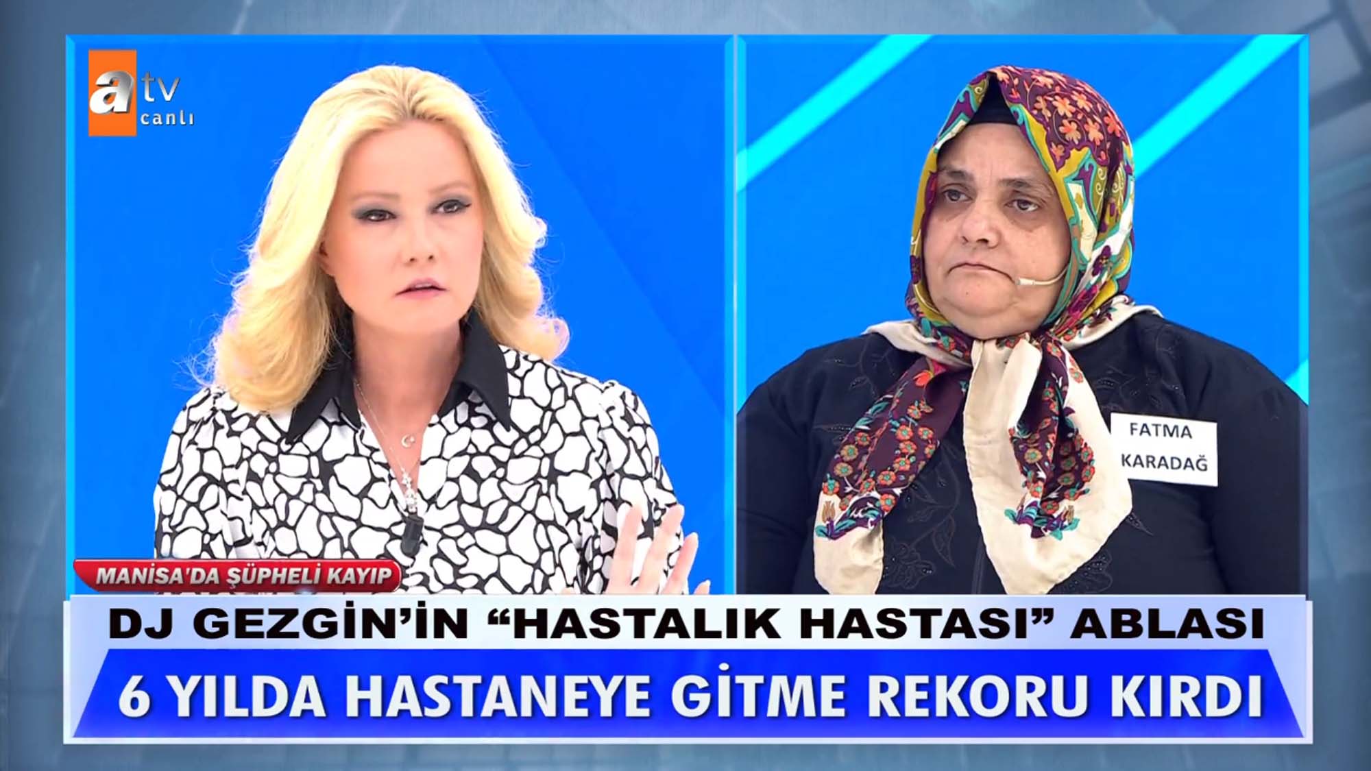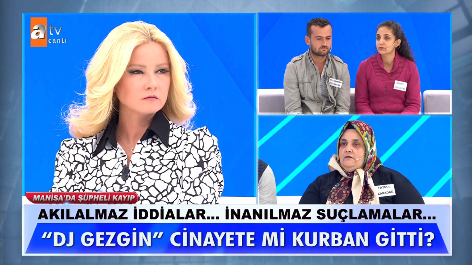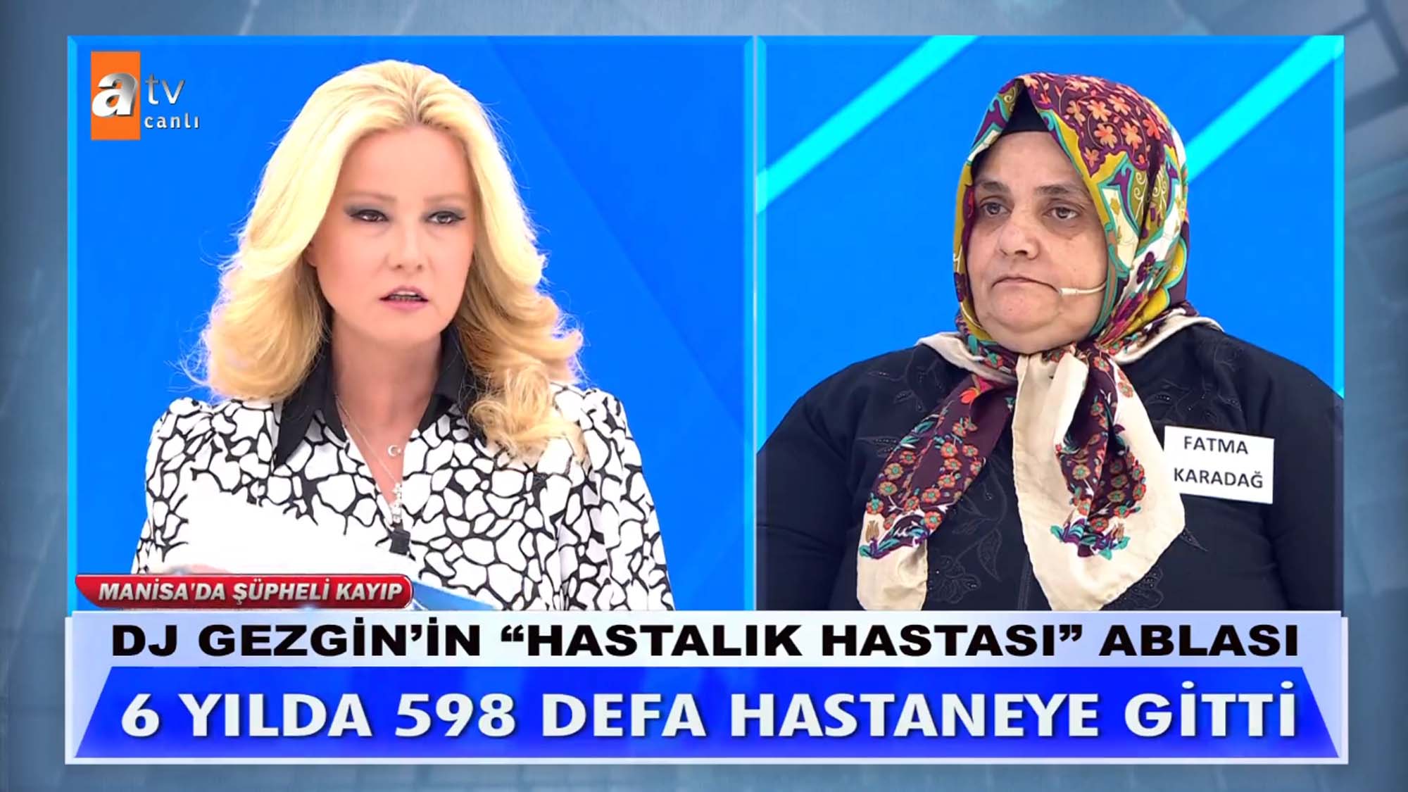 Müge Anlı ile Tatlı Sert programına katılan Fatma Karadağ, eski sevgilisi Cemal'in kardeşi Mehmet Karahan'ı öldürdüğünü ileri sürdü. DJ Gezgin olarak da tanınan Karahan'ın cansız bedeniyle günlerce aynı evde kaldıklarını, sevgilisi Cemal'in kokmasın diye her gün yıkadığını ve oda parfümü sıktığını ileri sürdü. Fatma Karadağ ile ilgili canlı yayını birçok ihbar yapılırken Manisa Turgutlu'da bir tarlada insana ait kafatası bulunduğu haberi bomba gibi düştü. Müge Anlı canlı yayında ortaya çıkan gerçeklerin ardından emniyet ekiplerini harekete geçtiğini açıkladı. İşte 'DJ Gezgin' lakaplı radyocu Mehmet Karahan'ın sır kaybında yaşanan son dakika gelişmeleri...