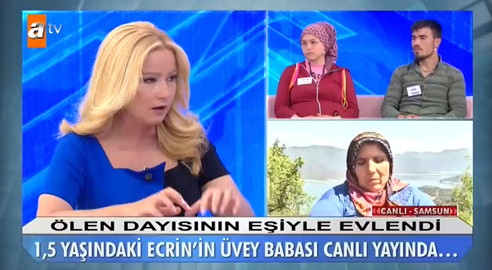 Müge Anlı ATV ekranlarında ekibi ile Ecrin için seferber oldu. Emniyet ekipleri ve bölge halkı da Samsun'da 1,5 yaşındaki Ecrin'i aramaya devam ediyor. Müge Anlı ile Tatlı Sert programının canlı yayınında Ecrin'in annesi Sevcan Kurnaz'ın anlattıkları kan dondurdu. Ecrin'in ölen üvey babasının ailesinin parmağı olduğu ifade edilirken, Müge Anlı iki aileyi de adeta mercek altına aldı. Müge Anlı tüm detayları ortaya çıkartırken, Ecrin'i arama çalışmaları sürüyor.