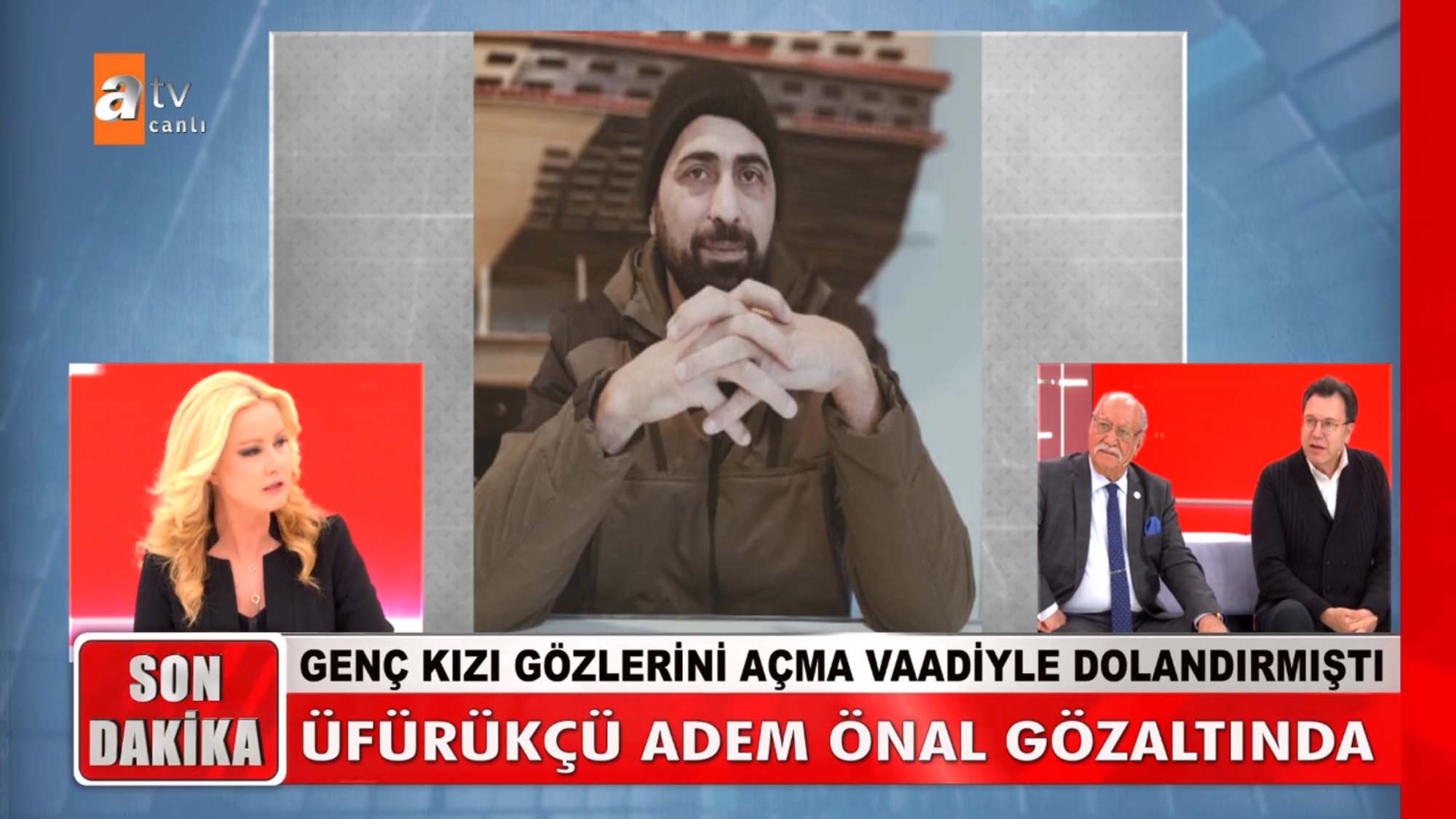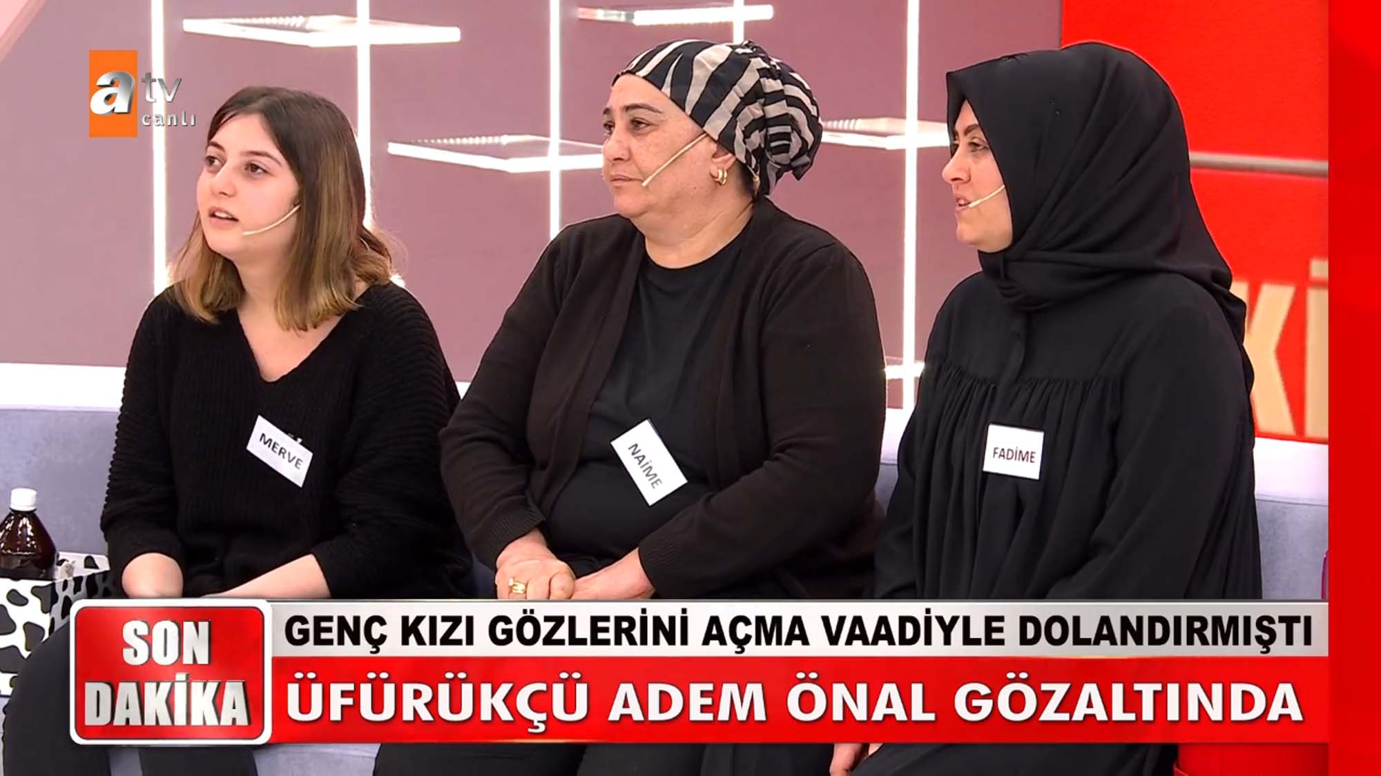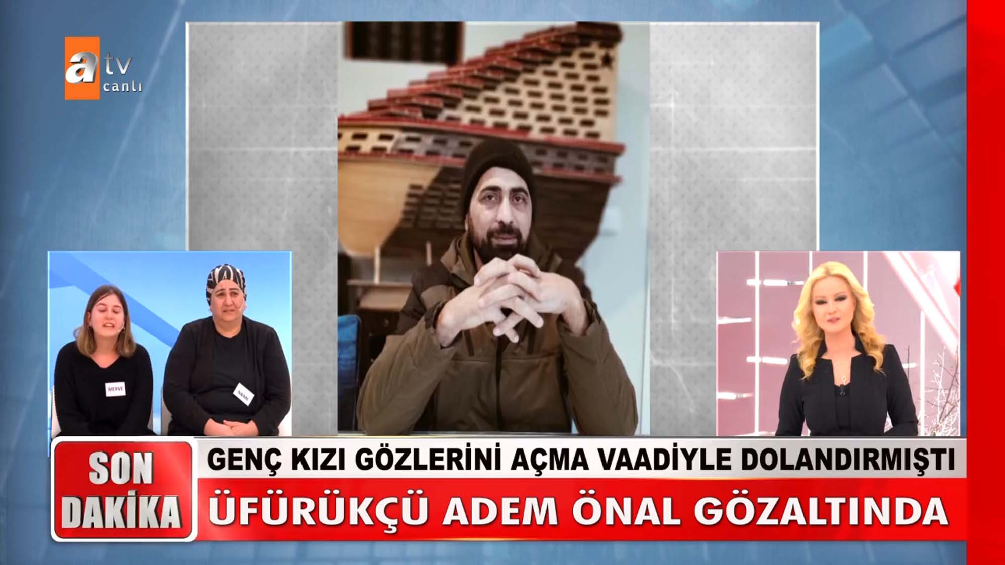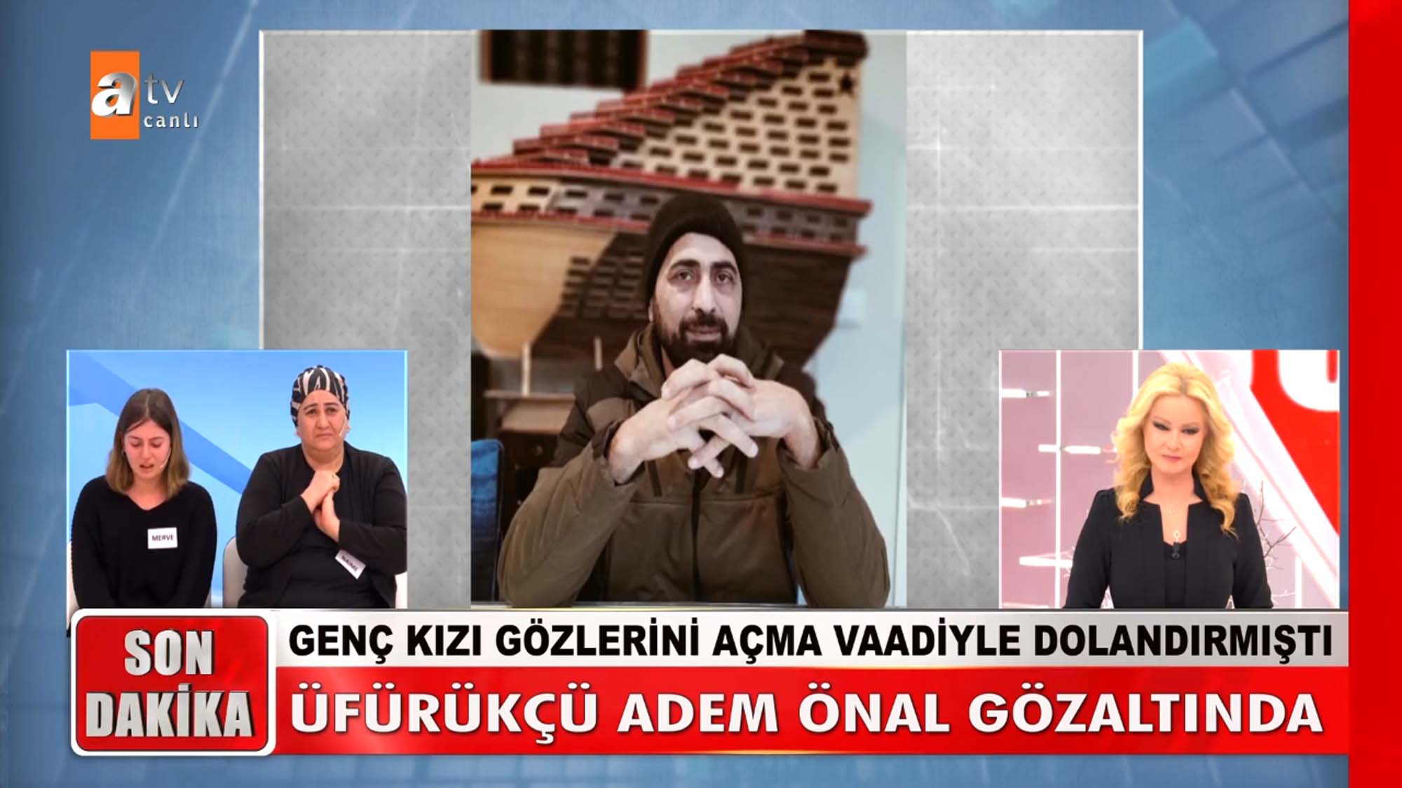 Müge Anlı ve ekibi bu kez Merve'nin yüzünü güldürdü. Görme yetisini kaybeden Merve ve annesi Naime şifa bulma ümidiyle gittikleri üfürükçüye 260 bin TL kaptırdı. Kedi tüyü ve derisiyle genç kızın gözlerini açacağını iddia eden Adem Önal Ankara'da gözaltına alındı. Genç kız, Müge Anlı'nın açıklaması sonrası gözyaşlarına boğuldu.