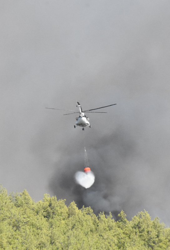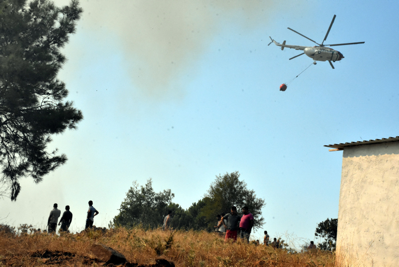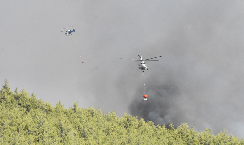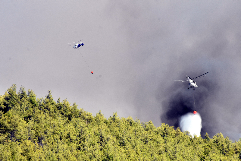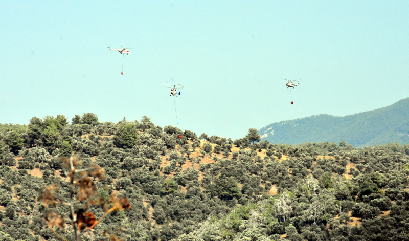 Bölgeye sevk edilen 5 helikopter, 50 arazöz ve 150 orman işçisiyle, rüzgarın etkisiyle yayılan yangına müdahale ediliyor.