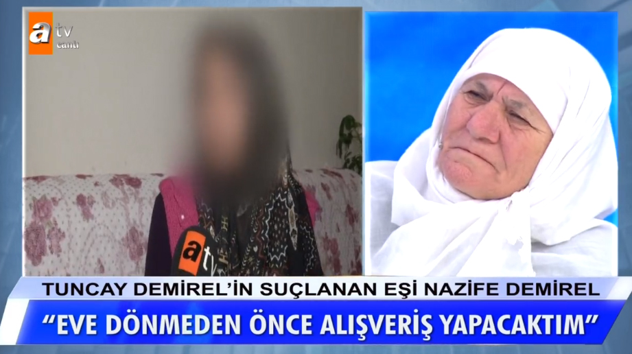 Duydukları karşısında şoke olan Müge Anlı, "Yeter artık, pes" diyerek sitem etti. Müge Anlı Tuncay Demirel'in ailesine de "Torunlarınıza sahip çıkın" dedi. Nazife Demirel'in videosu ndaki (görüntüleri) 3. kişi stüdyodakileri şaşkına çevirdi.