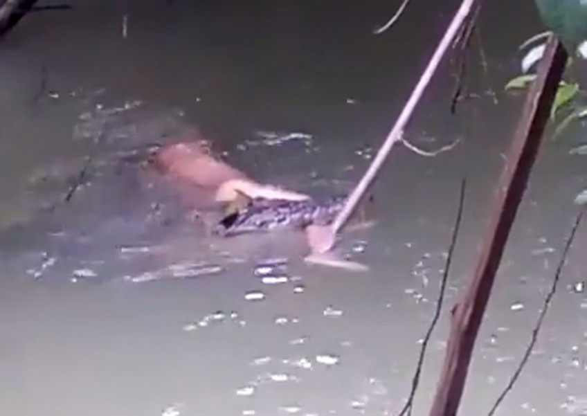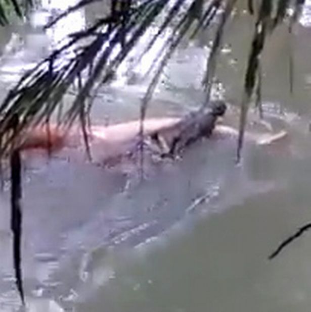 Endonezya'da Berau River nehirinde yüzen bir kişi dev timsahın kurbanı oldu.