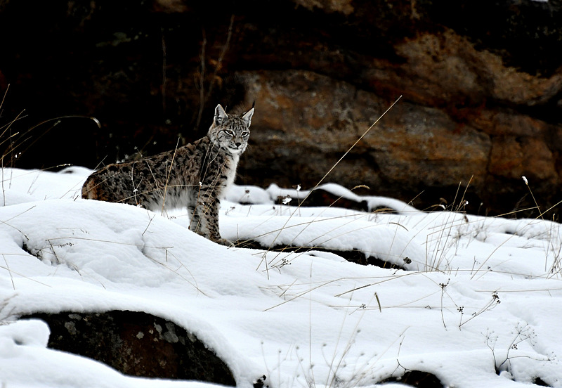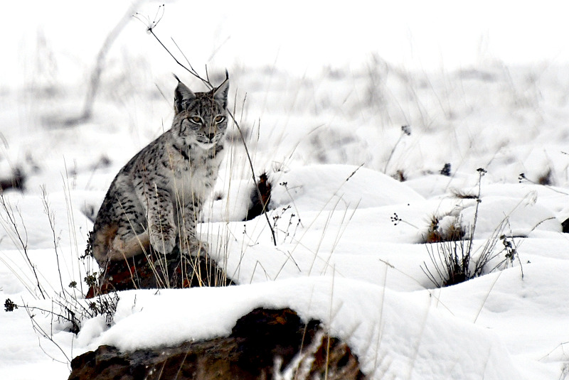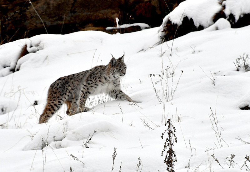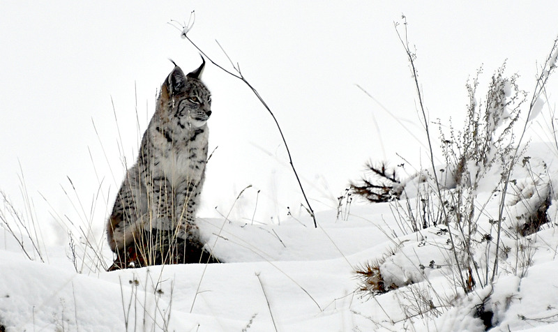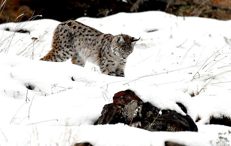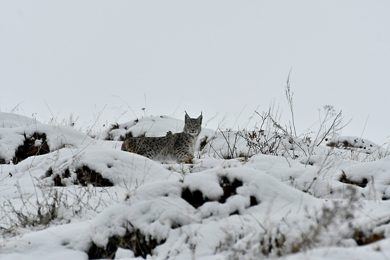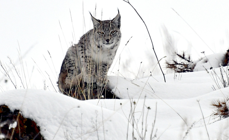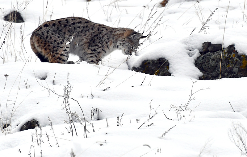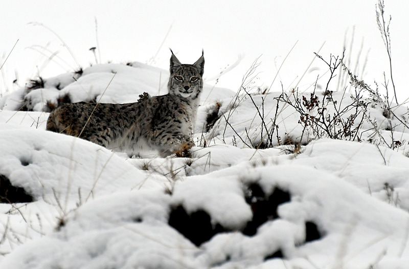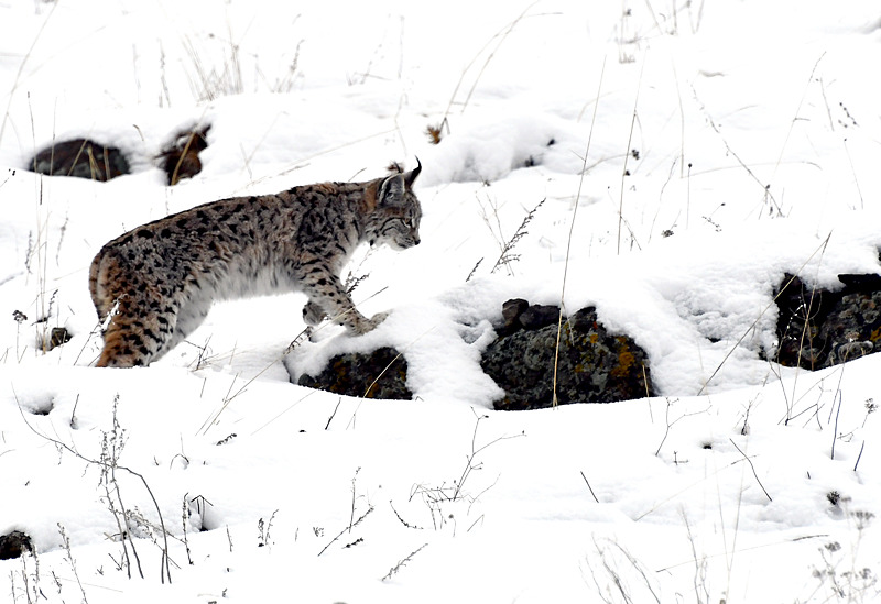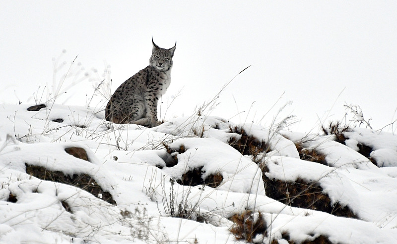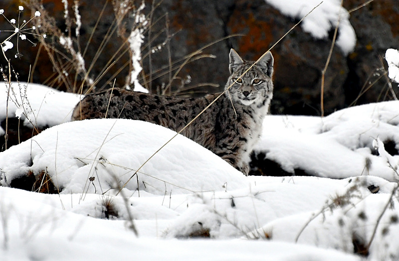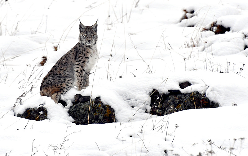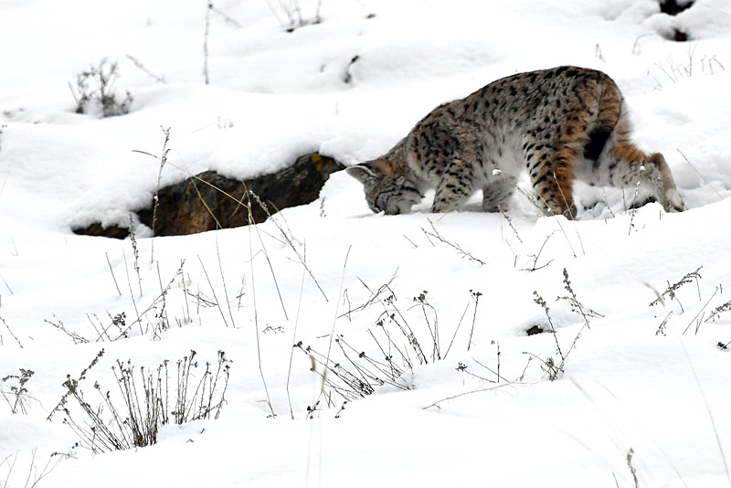Av için genellikle karanlığı tercih eden, nesli tehlike altındaki Kafkas vaşağı, Kars'ın Sarıkamış ilçesinde karla kaplı arazide gündüz avlanırken görüntülendi.