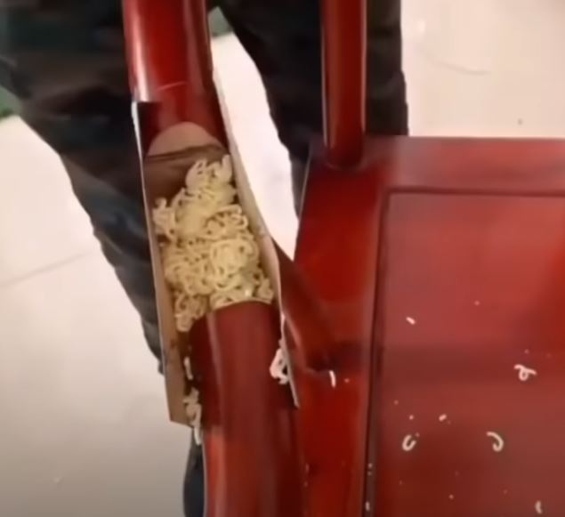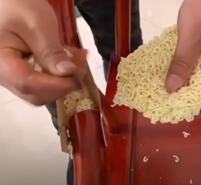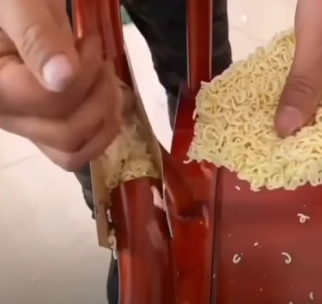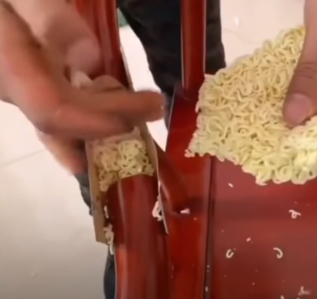 Kırılan sandalye, masa ve lavaboları noodle ile tamir eden kişiler bu anları sosyal medyada paylaştı.