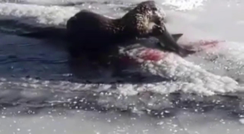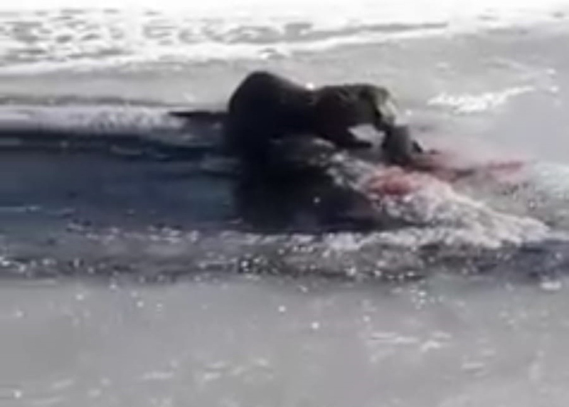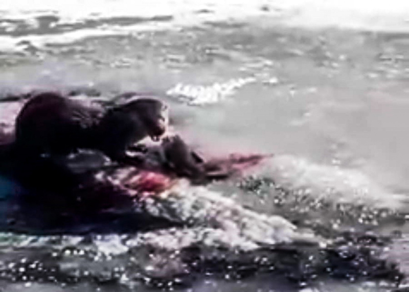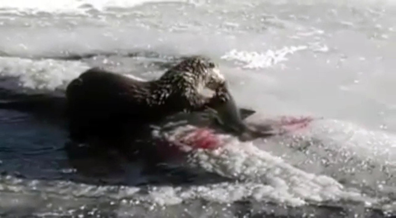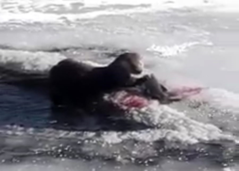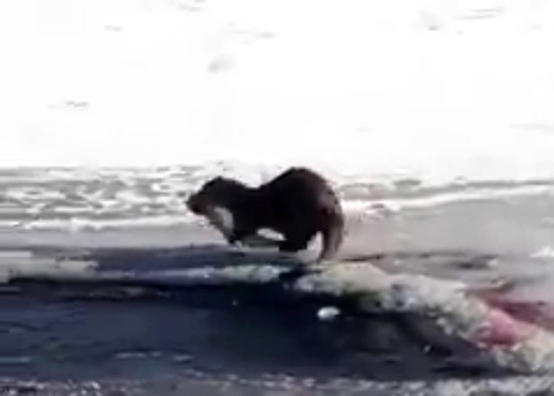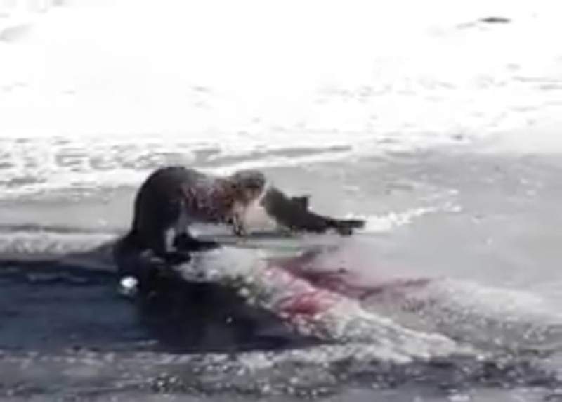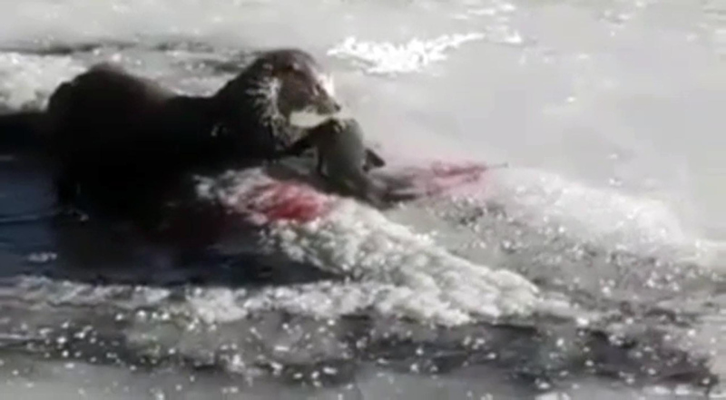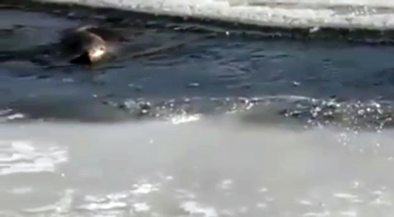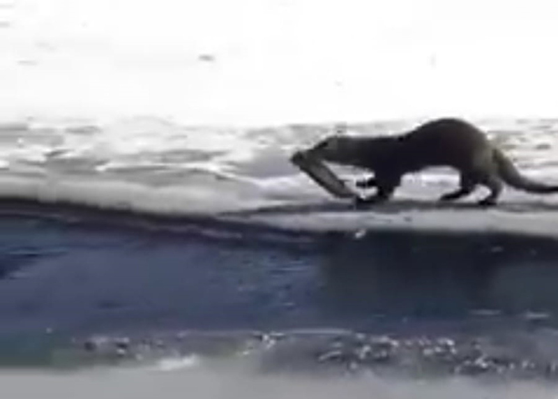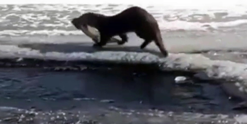 Ardahan'da nesli tükenmekte olan su samuru, Kula Nehri üzerinde balık yerken vatandaşlar tarafından video kaydına alındı. Gündüz saatlerinde bölgede gezen bir grup vatandaş, buz tutan nehir üzerinde su samurunun balık yediği anları görmesi üzerine hemen kayda alındı.
