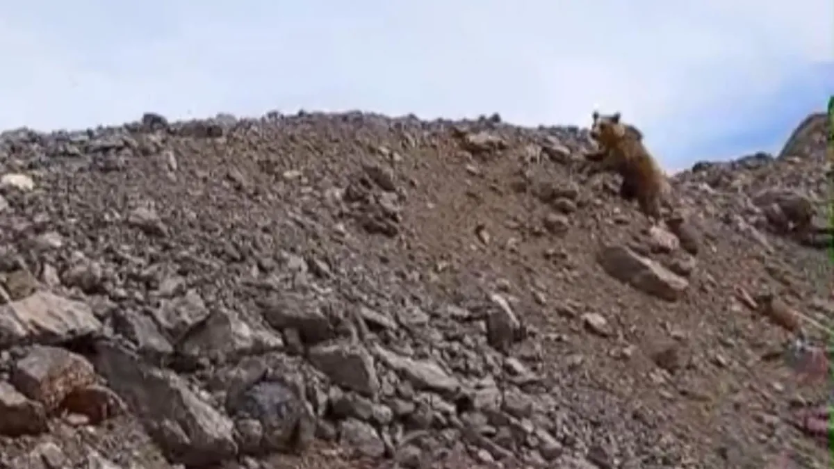 Yüksekova ilçesine bağlı Dağlıca Köyü'nün kırsalında kış uykusundan uyanan ayı ailesi bir vatandaşın cep telefonuyla kaydedildi.