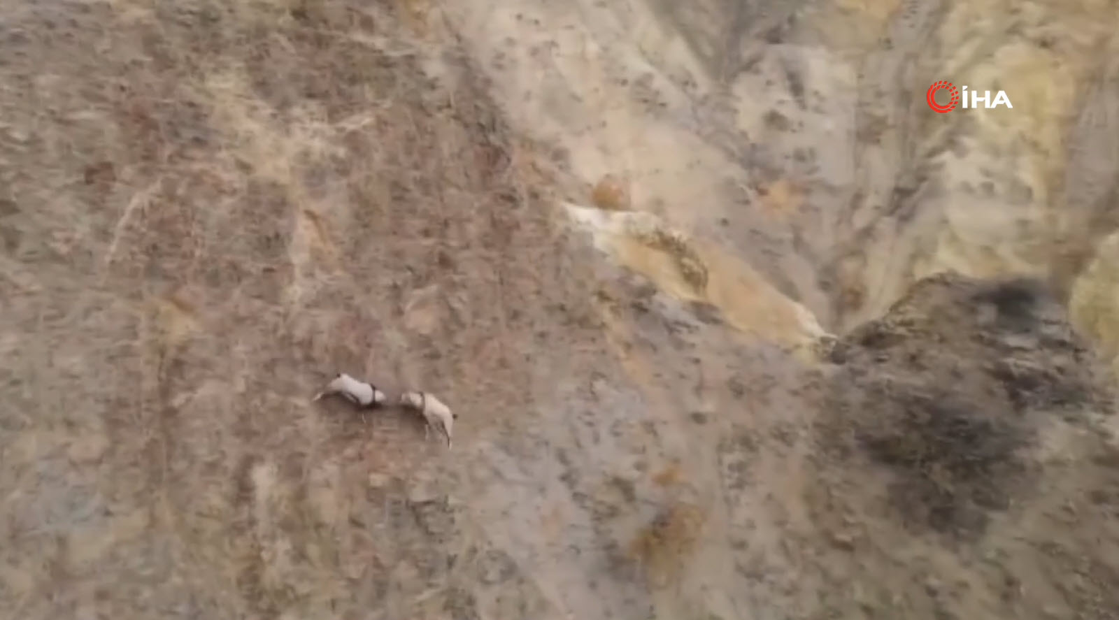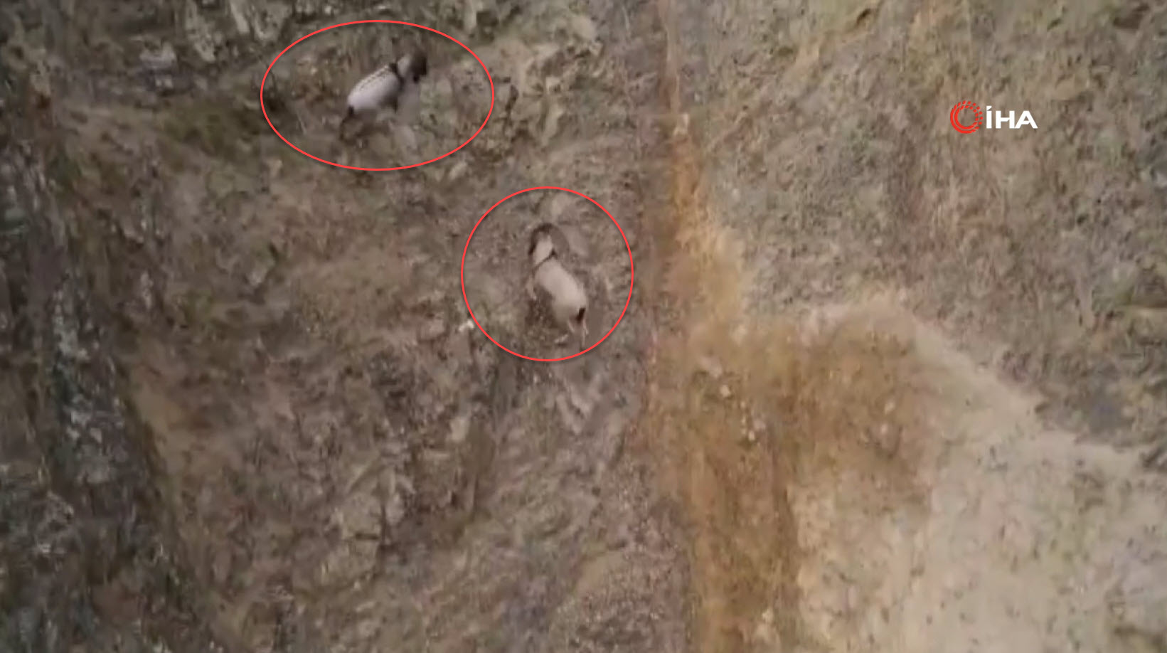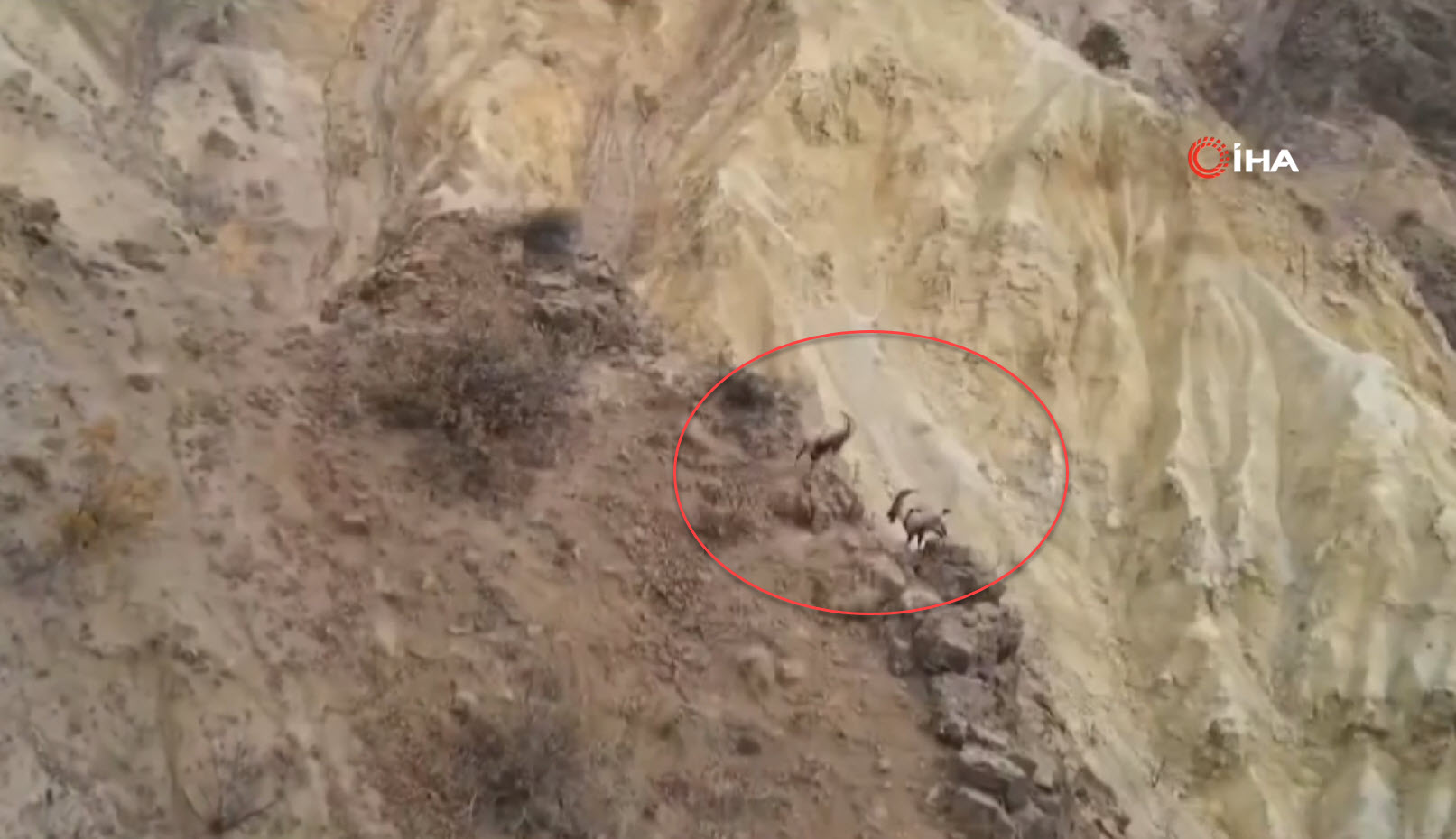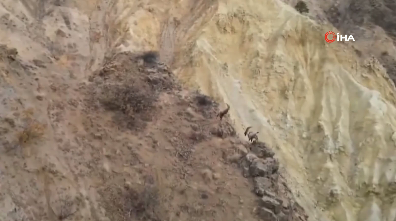 Doğa Koruma Birliği'nin (IUCN) yayımladığı Nesli Tükenme Tehlikesi Altında Olan Türlerin Kırmızı Listesi'nde bulunan, avlanması yasak ve koruma altındaki tür olan yaban keçileri, karlı arazide bata çıka ilerleyerek yollarına devam etti.