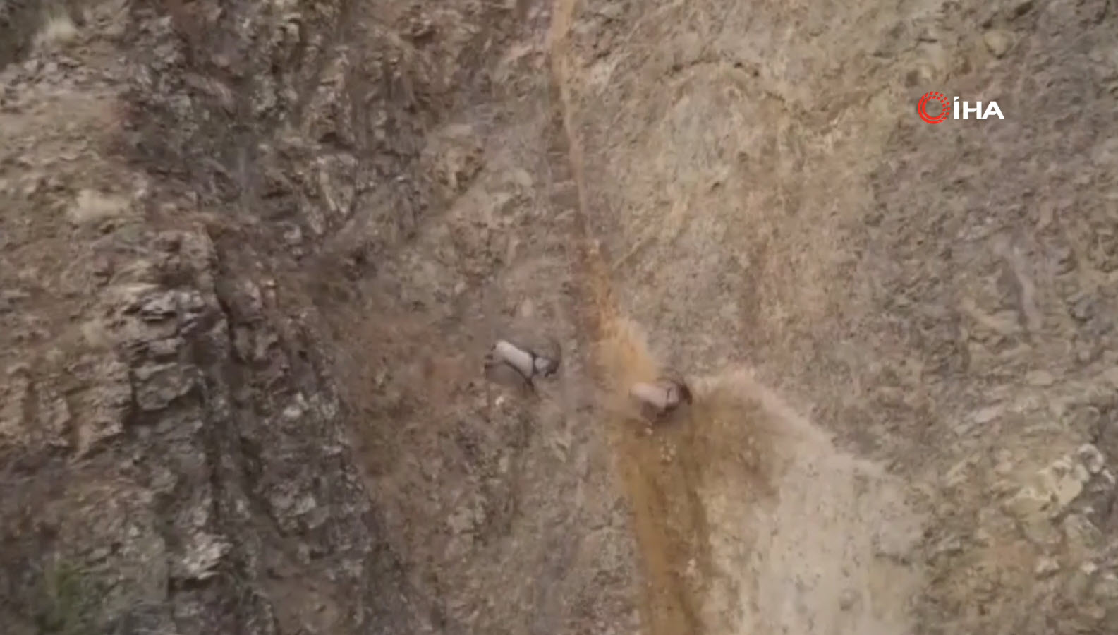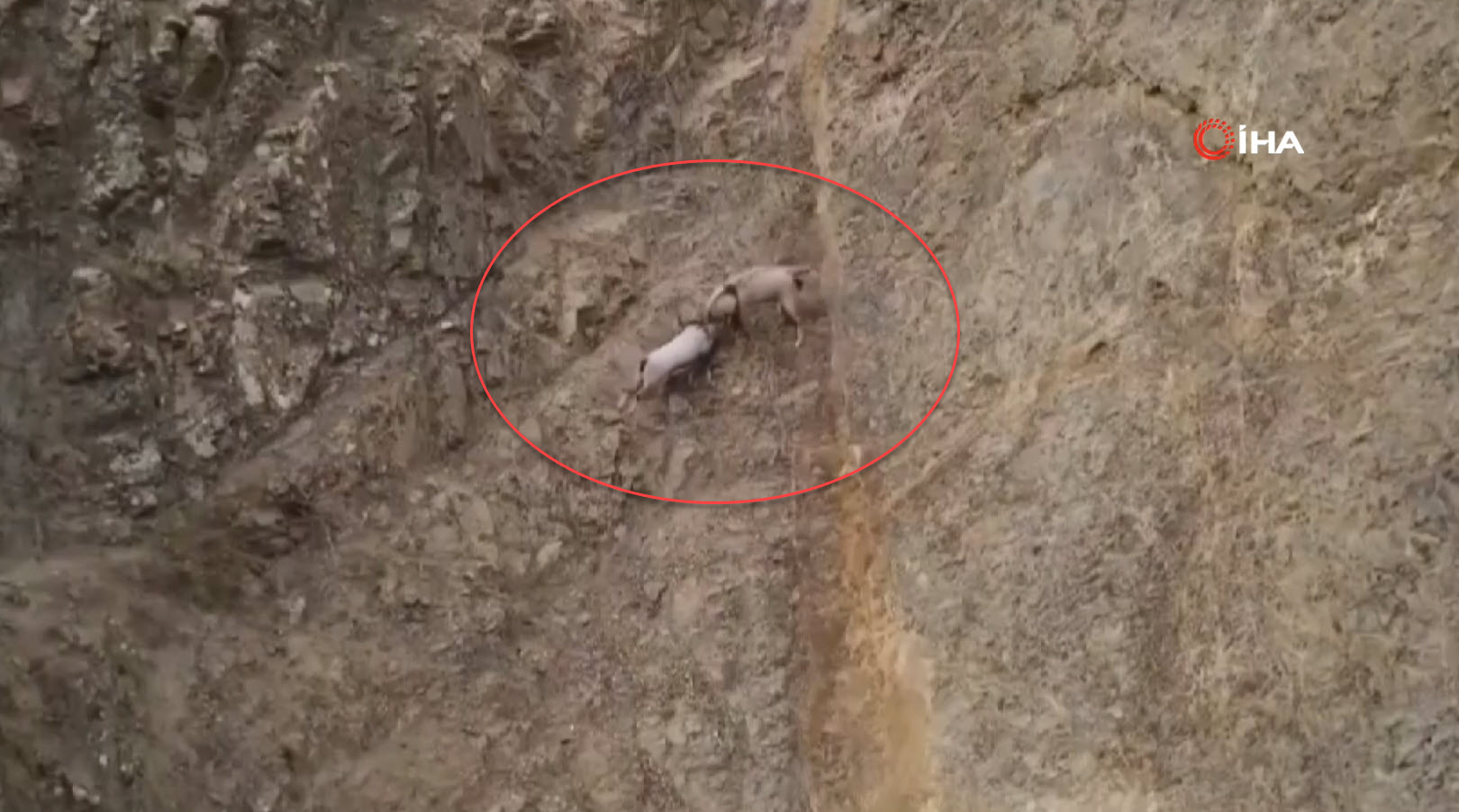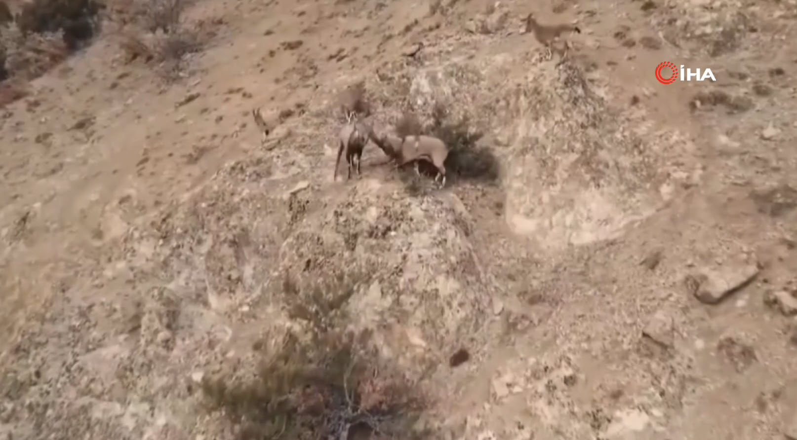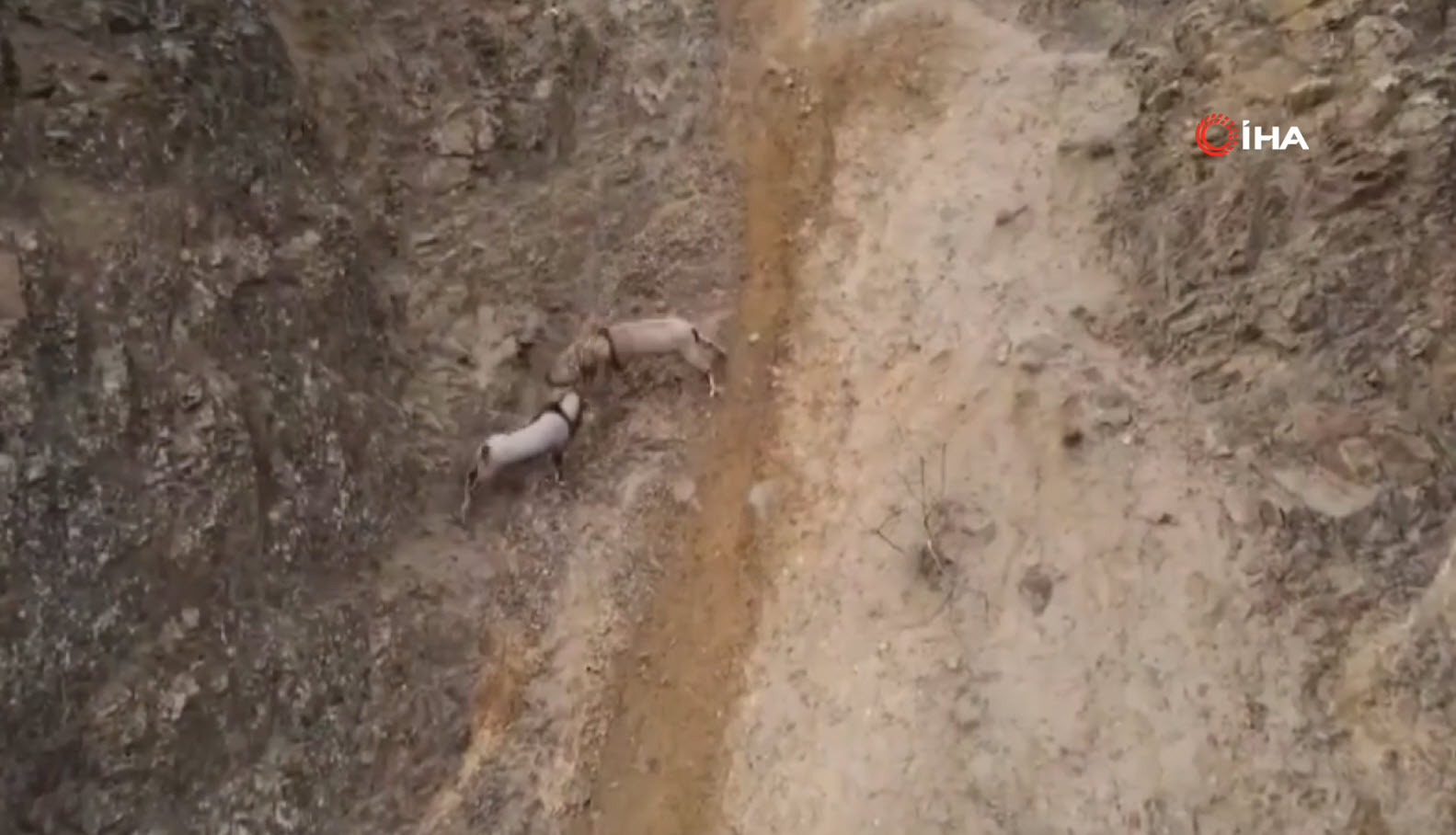 Doğa Koruma Birliği'nin (IUCN) yayımladığı Nesli Tükenme Tehlikesi Altında Olan Türlerin Kırmızı Listesi'nde bulunan, avlanması yasak ve koruma altındaki tür olan yaban keçileri, karlı arazide bata çıka ilerleyerek yollarına devam etti.