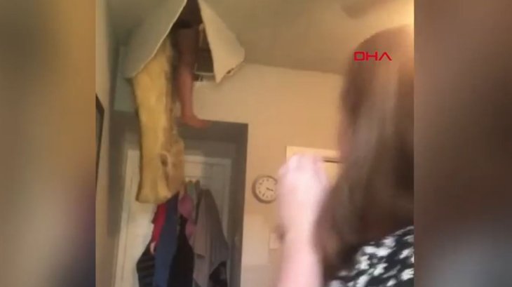 O sırada tavan arasında bavul arayan genç kızın annesi, tavanın bir bölümünün kırılmasıyla aşağıya düştü.