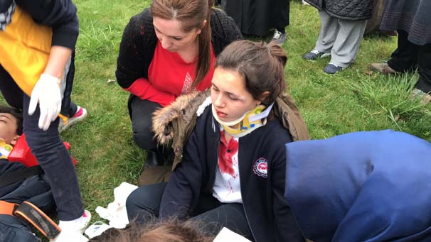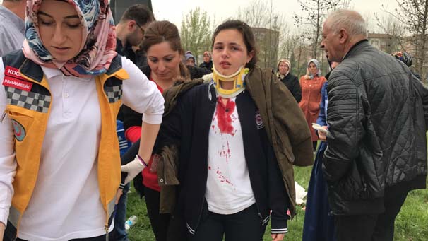 Kazada 16 kişinin bulunduğu öğrenci servisindeki 13 öğrenci ile hafif ticari aracın sürücüsü Mustafa Zorla ile aynı araçta bulunan Elif Uçkur yaralandı.