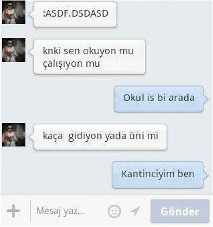İnternet dünyasının son zamanlarda kullanıcı sözleşmesi nedeniyle en çok tartışılan programlarının başında gelen WhatsApp, bir mesajlaşma uygulamasıdır. Milyarlarca kullanıcıya sahip WhatsApp'ta gün içinde komik diyaloglara da imza atılıyor.