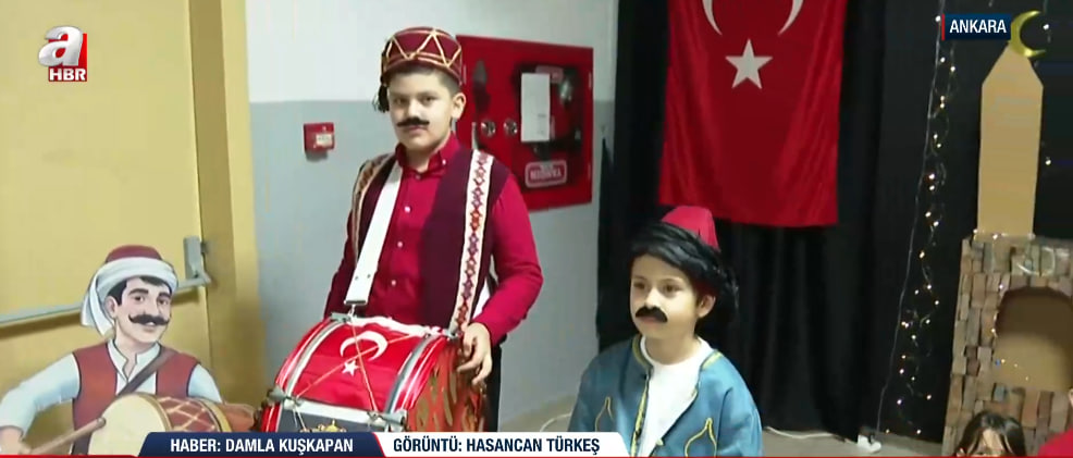 Okulun içerisinde kurulan ve her köşesi titizlikle hazırlanan Ramazan Sokağı'nda miniklerin heyecanı gözlerinden okunuyordu. Elinde davuluyla mani okuyan 4. sınıf öğrencisi, "Besmele ile başladım, sokakları kışladım, Ahmet abi gelince bahşişimi düşledim" sözleriyle geleneksel Ramazan manilerini seslendirdi.