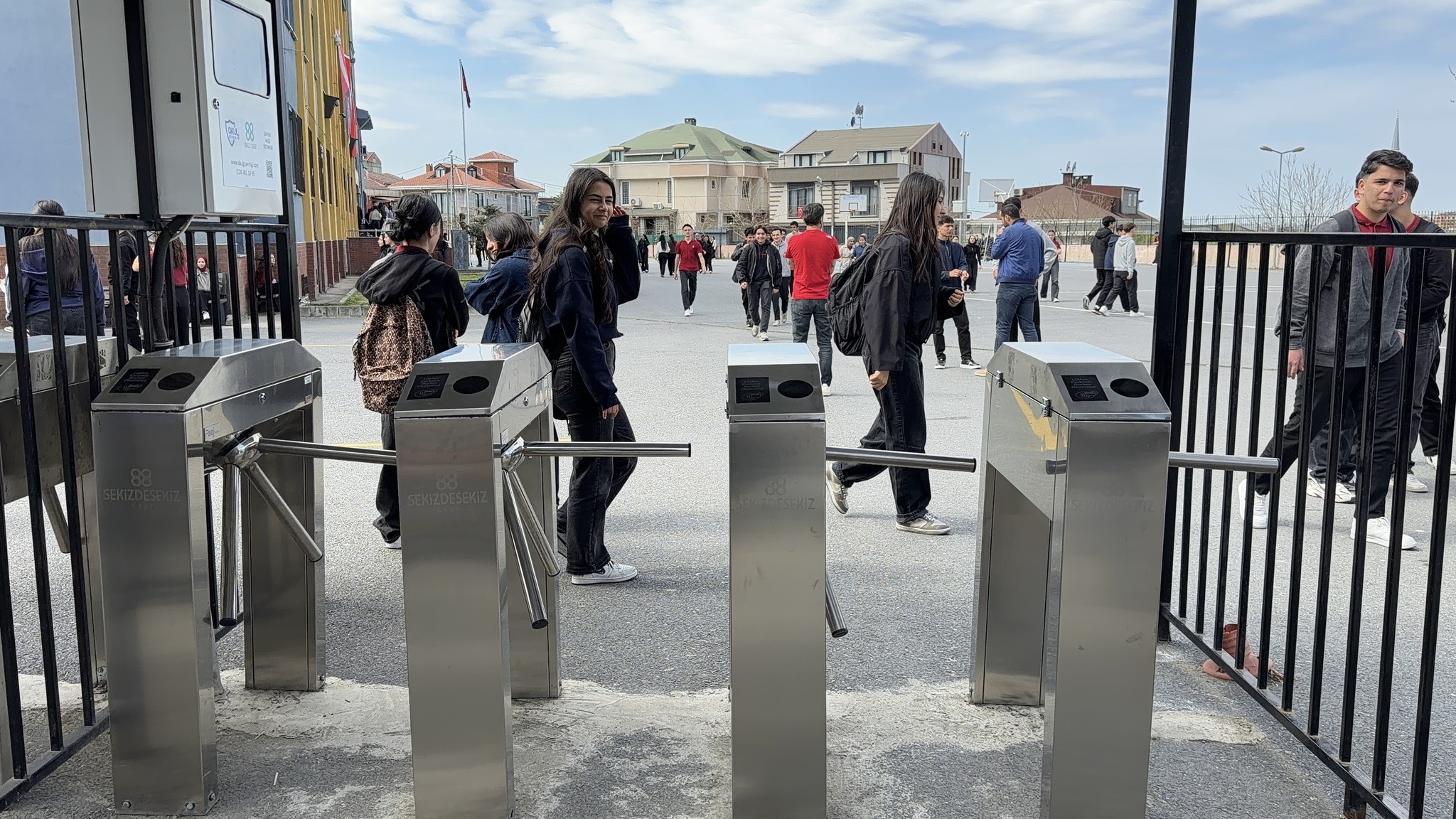 Bu kapsamda Arnavutköy Anadolu Lisesi'nde hayata geçirilen güvenlik uygulaması kapsamında öğrenciler, kendilerine özel tanımlanan kartlarla turnikelerden geçerek okula giriş yapıyor.