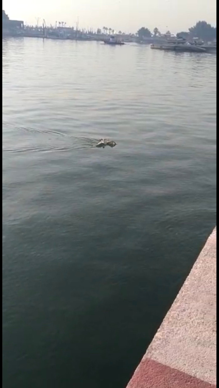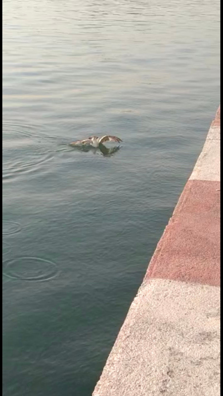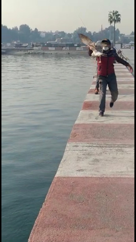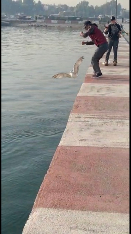 Bir süre uğraştıktan sonra oltadan martıyı kurtaran vatandaş, daha sonra havaya atarak, onu özgürlüğüne kavuşturdu.