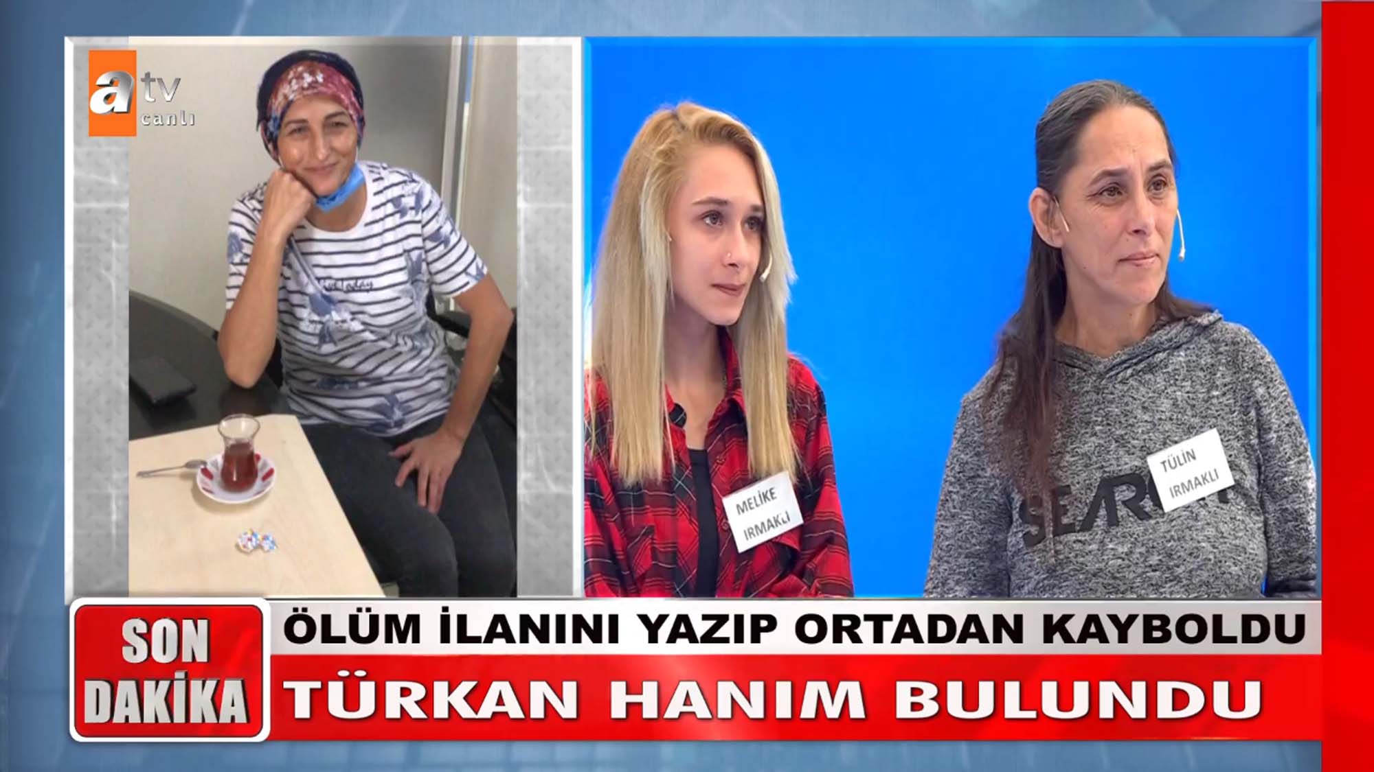 50 yaşındaki Türkan Günday, 'cenazeme kaç kişi katılır?' diye düşünerek sosyal medyadan ölüm ilanı verdi. Daha sonrasında ortadan kaybolan ve yaklaşık bir aydır kendisinden hiçbir haber alınamayan Günday'ın ailesi, Müge Anlı ile Tatlı Sert'e başvurdu. Kardeşi Türkan'ın bir yıl önce boşandığını ve evli olan Ersin Güneş ile aşk yaşadığını, ikili arasında sık sık kıskançlık tartışması yaşandığını belirtti. Hayatından endişe eden Türkan Günday yayın sırasında bulunurken, evden gidiş nedeni şaşkına çevirdi.