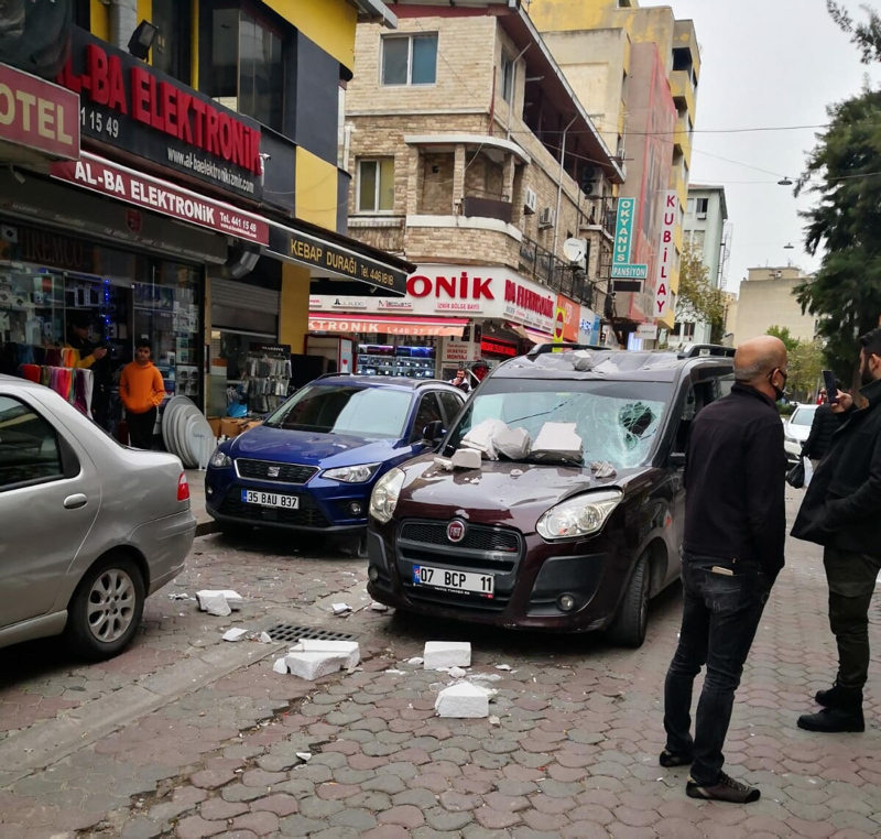 Saat 09.15 sıralarında İsmet Kaptan mahallesinde Emre Katre (30) idaresindeki hafif ticari araç sokakta seyir halindeyken, kuvvetli fırtınanın etkisiyle sokakta bulunan ve tadilat halinde olan bir otelden gaz beton parçaları savruldu.