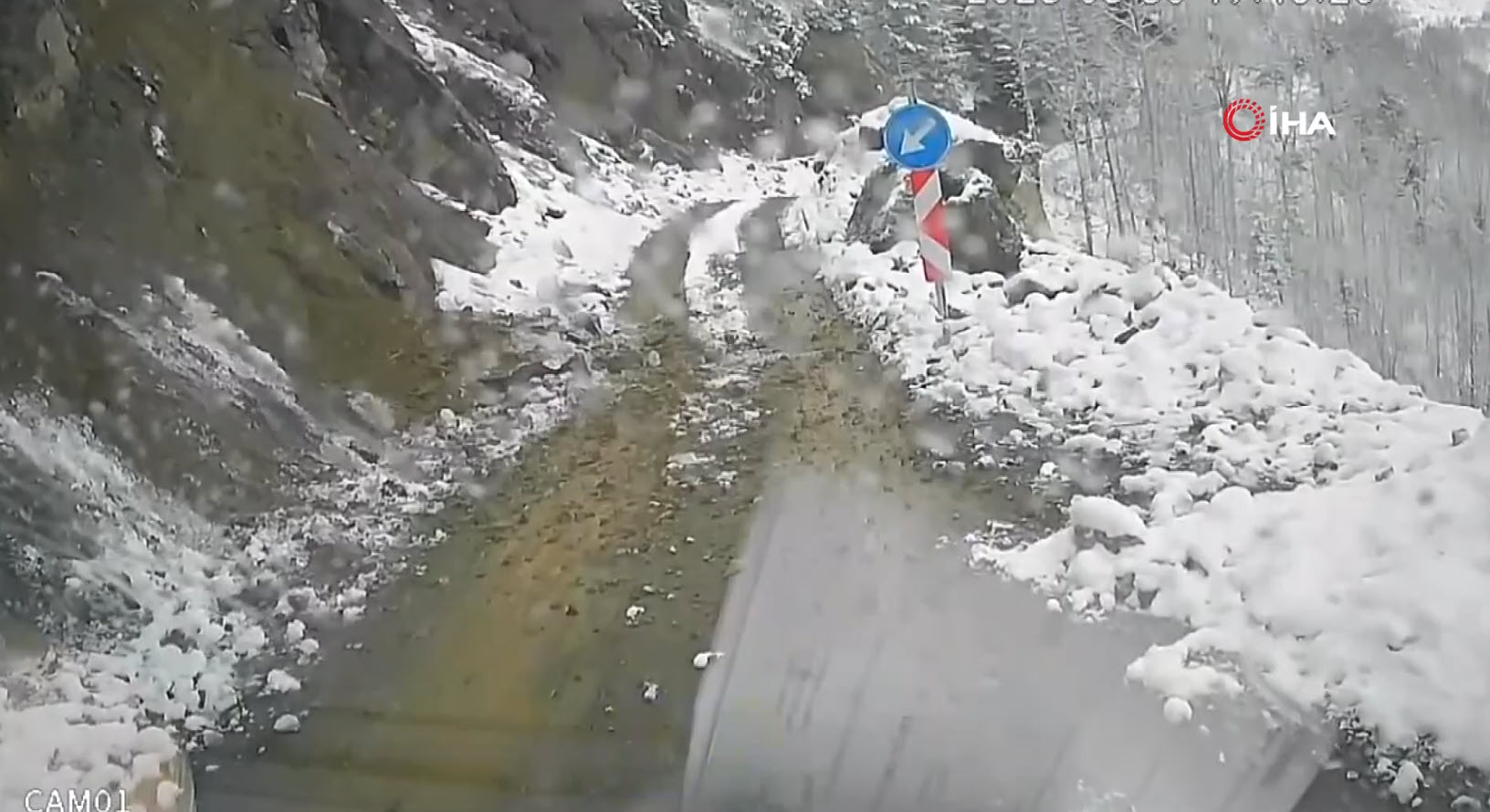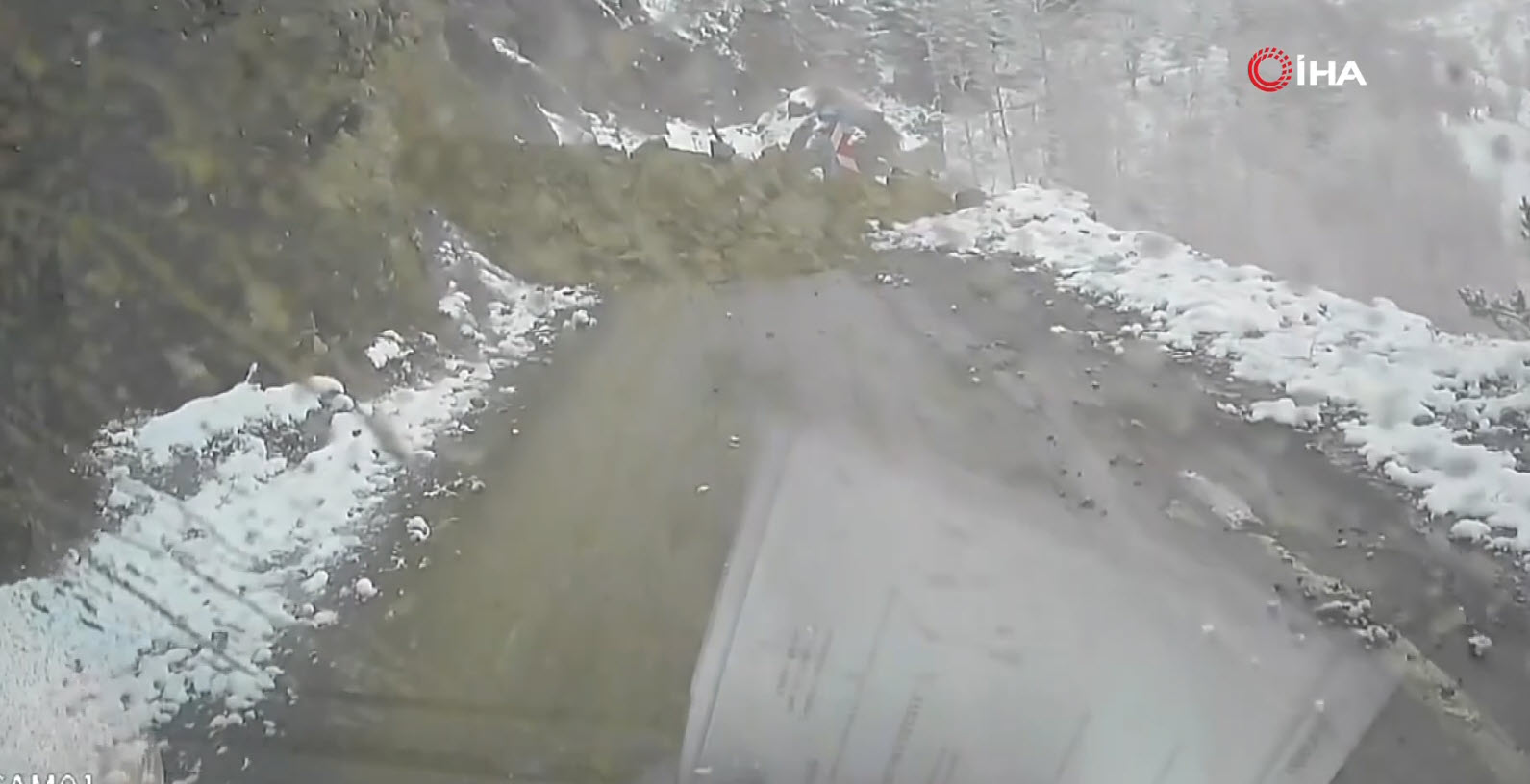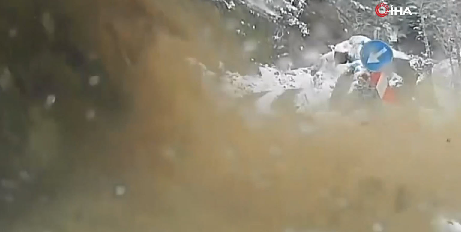 Heyelan altında kalmaktan dikkati sayesinde son anda kurtulan Gündüz, heyelanın geldiğini fark edince durup hızlı bir şekilde geriye doğru olay yerinden aracıyla uzaklaştı.