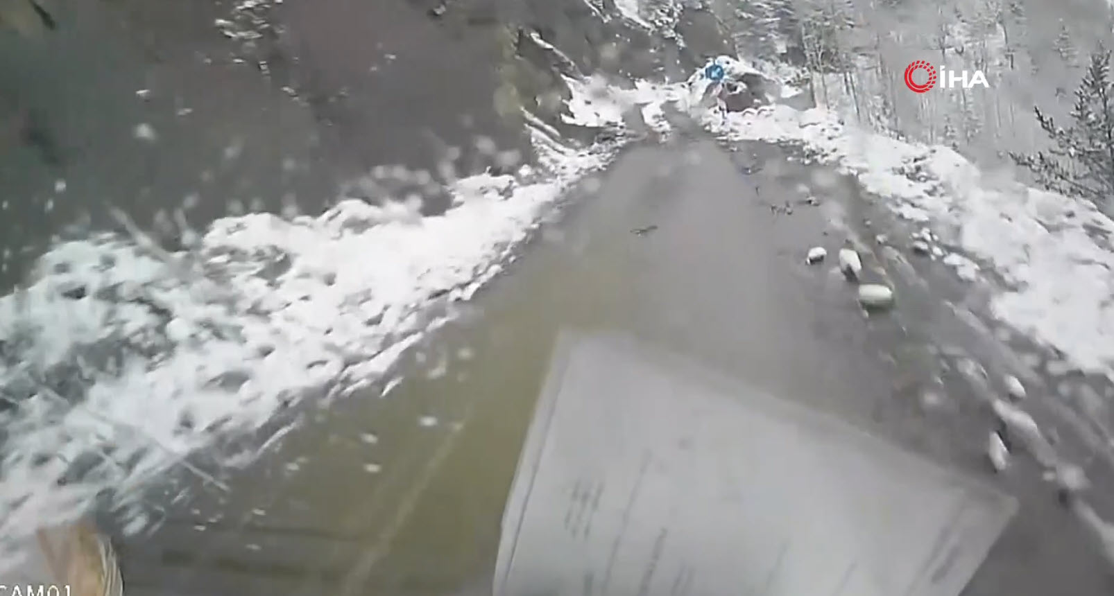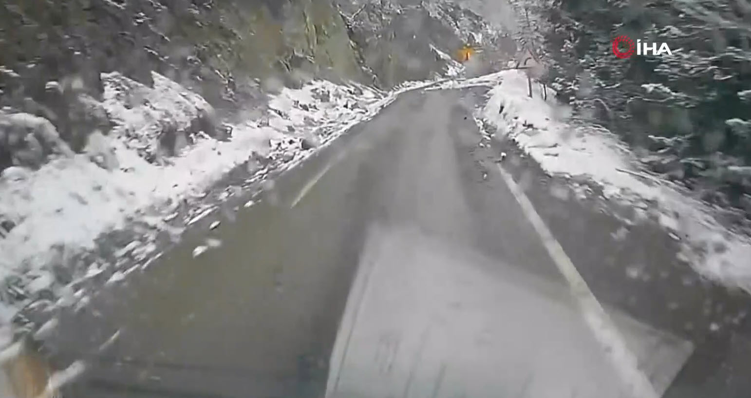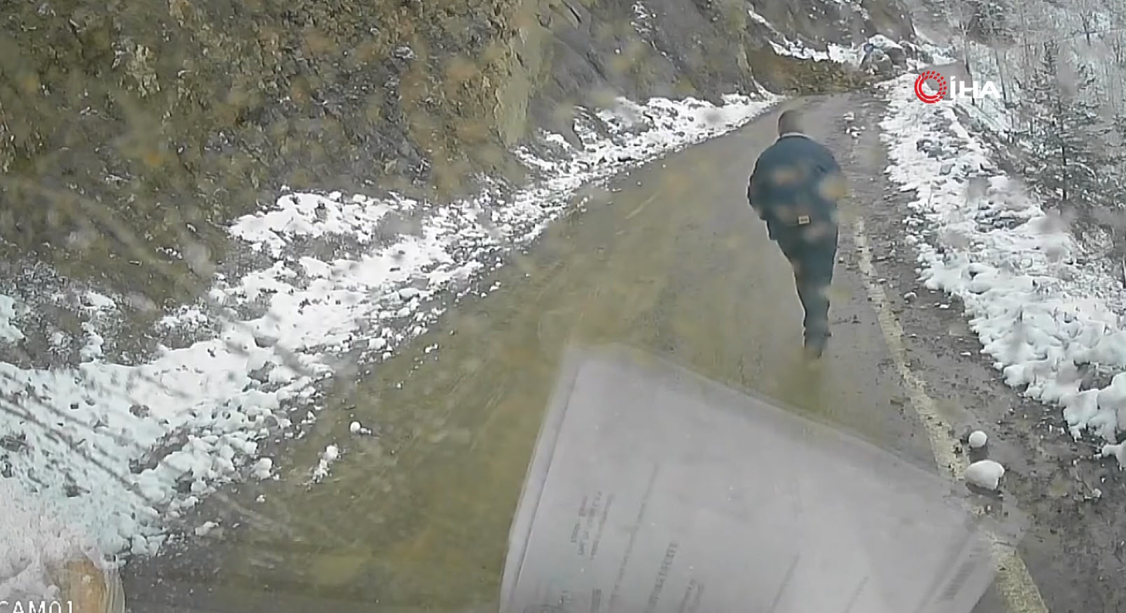 Heyelan altında kalmaktan dikkati sayesinde son anda kurtulan Gündüz, heyelanın geldiğini fark edince durup hızlı bir şekilde geriye doğru olay yerinden aracıyla uzaklaştı.