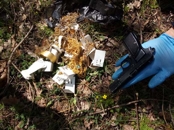 Gözaltına alınan iki şüpheli altınları Cumalıkızık minibüs duraklarının üst tarafındaki ormanlık alana sakladıklarını itiraf etti. Bunun üzerine gasp büro dedektifleri tarafından yapılan aramada silah ve altınlar belirtilen alanda bulundu.