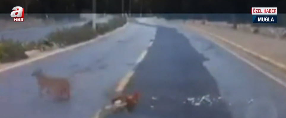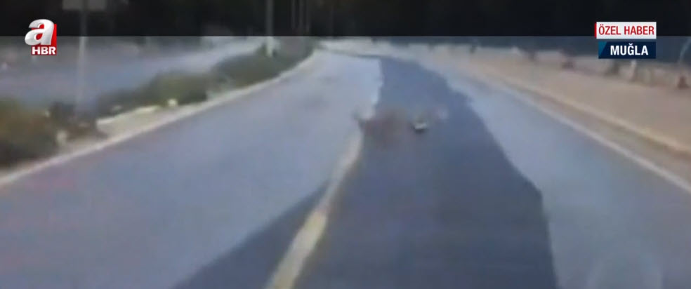 Muğla'da nesli tükenme tehlikesi altında olan vaşak şehre indi kara yolunda horoz kovaladı. O anlar Birol Günay'ın kullandığı otomobilin araç kamerasına saniye saniye yansıdı. Vaşağın av hayali bakın nasıl hüsranla sonuçlandı?