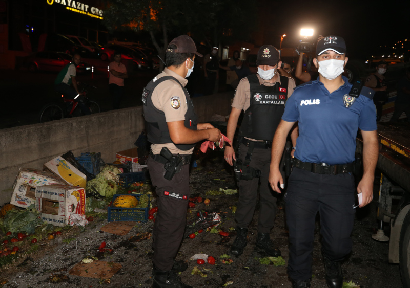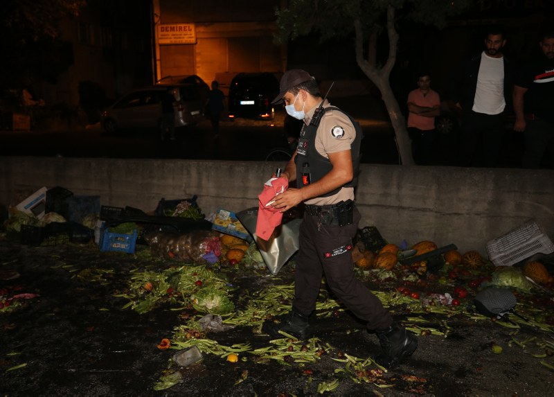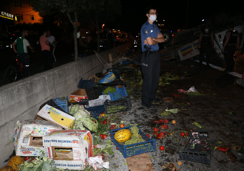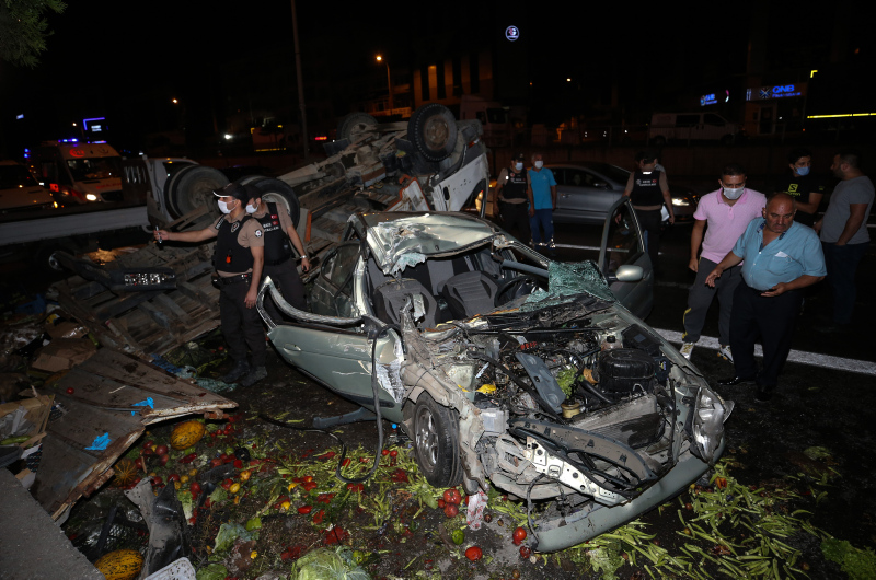 Otomobil ise kamyona vurduktan sonra yol kenarındaki duvara çarptı. Kazada Kamyondaki 2 kişi ile otomobildeki 5 kişi yaralandı. Takla atan kamyondaki sebzeler ise yola saçıldı. İhbar üzerine olay yerine sağlık, itfaiye ve polis ekipleri sevk edildi. Ekipler olay yerine gelene kadar, kazayı gören çevredeki vatandaşlar ve sürücüler yardıma koştu.