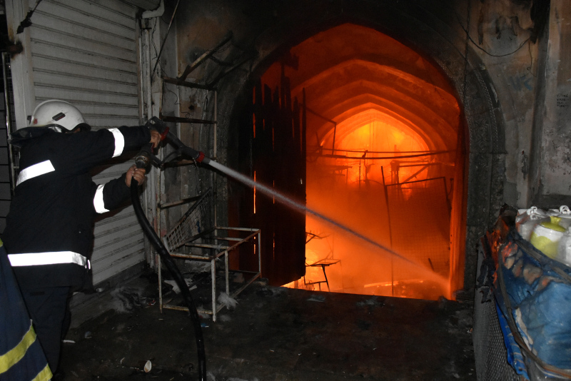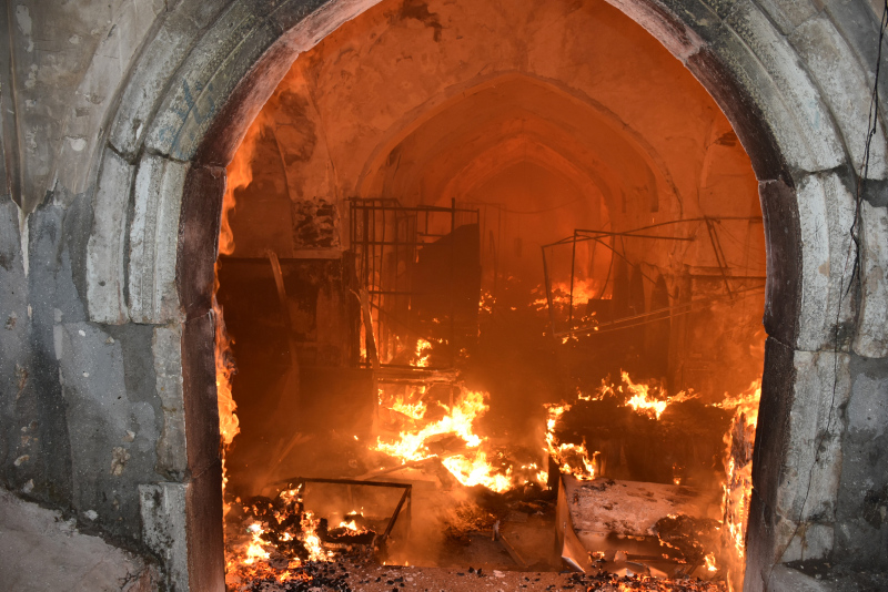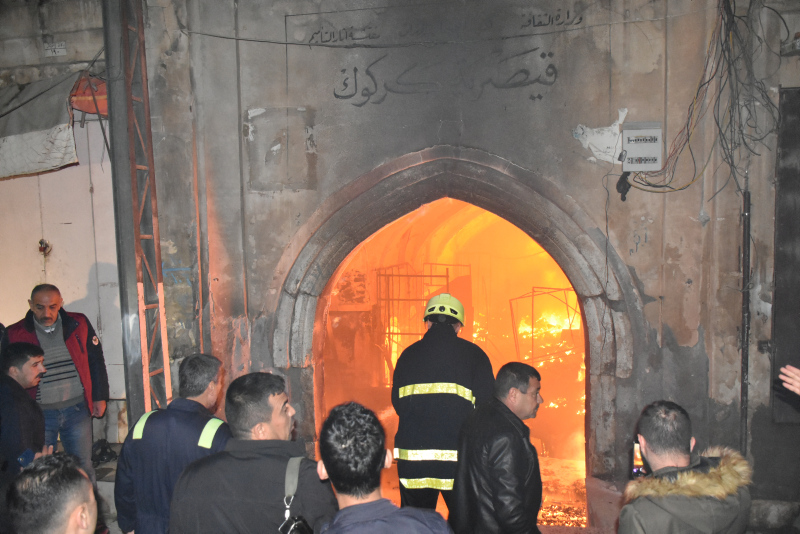 Kerkük'teki Osmanlı döneminde yaptırılan ve önemli ticaret merkezleri arasında yer alan Tarihi Kayseri Çarşısı'nda gece saatlerinde yangın çıktı.