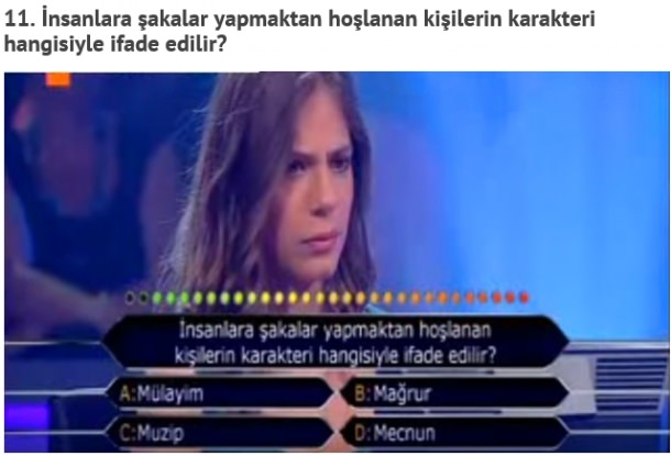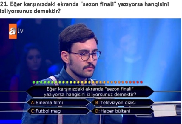ATV ekranlarında yaynlanan ve izlenme rekorları kıran Kim Milyoner Olmak İster yarışmasında birbirinden ilginç yarışmacılar ve cevaplarla karşılaşılıyor.