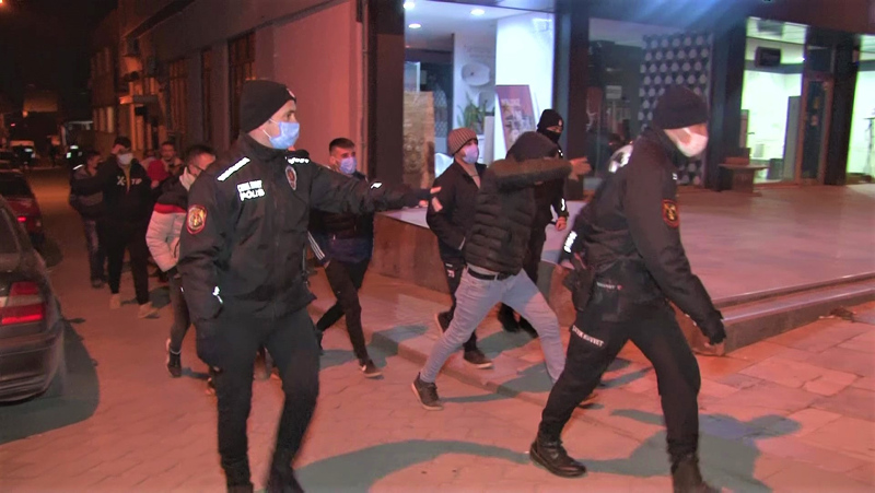 Salgın ve hijyen koşullarının görmezden gelindiği ortamda kumar oynayan şüpheliler için çevre karakollardan takviye araç ve Çevik Kuvvet yönlendirilirken, bazı aileler ise olay yerine gelerek çocuklarını sordu. Sıra sıra kimliklerine göre çağırılan şüpheliler Çevik Kuvvet eşliğinde midibüslere bindirilerek karakollara dağıtıldı.