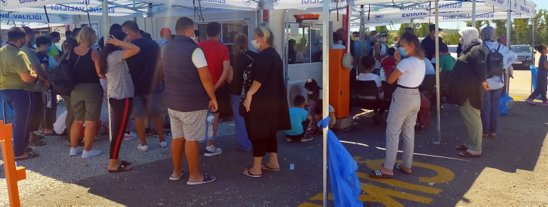PCR testi için test noktasında yoğun kalabalık oluşturan gurbetçilerin salgının bulaşmaması için en az 1 metre olan mesafe ve maske kurallarına uymadıkları görüldü. Zaman zaman sıra tartışmalarının yaşandığı noktada gurbetçiler ise, test noktalarının çoğaltılması talebinde bulundu.