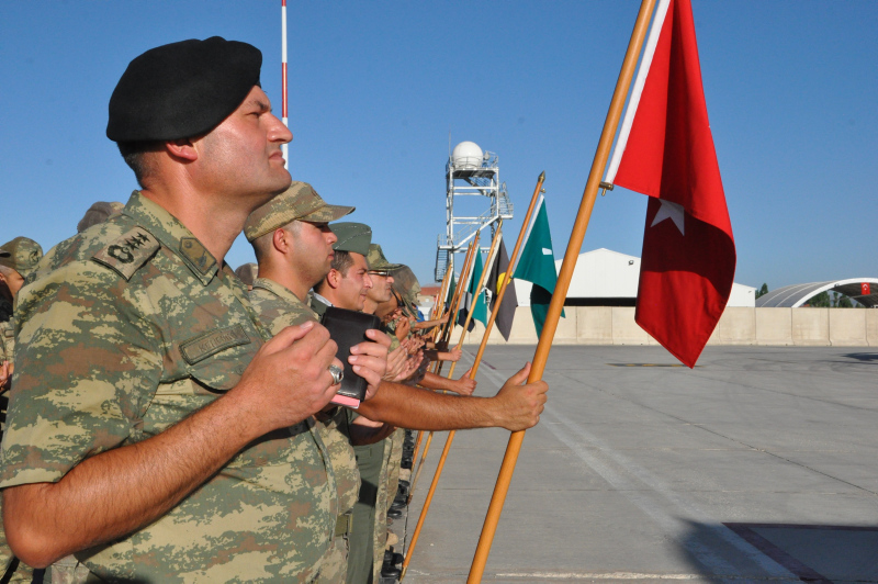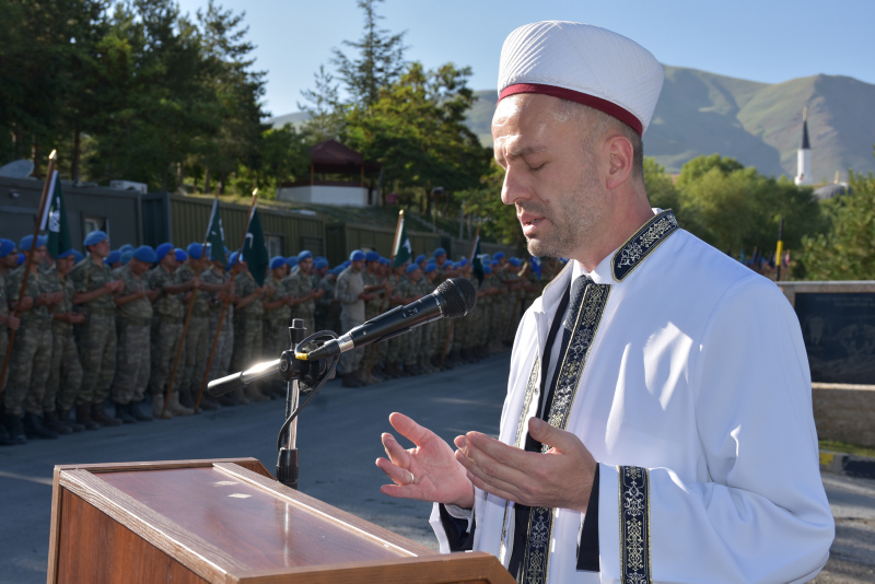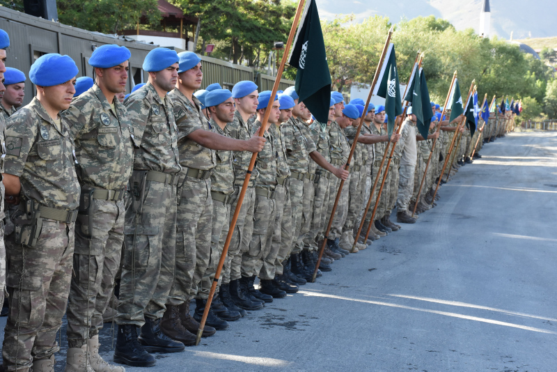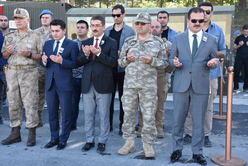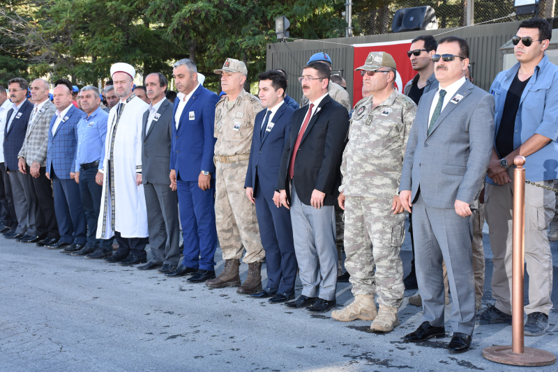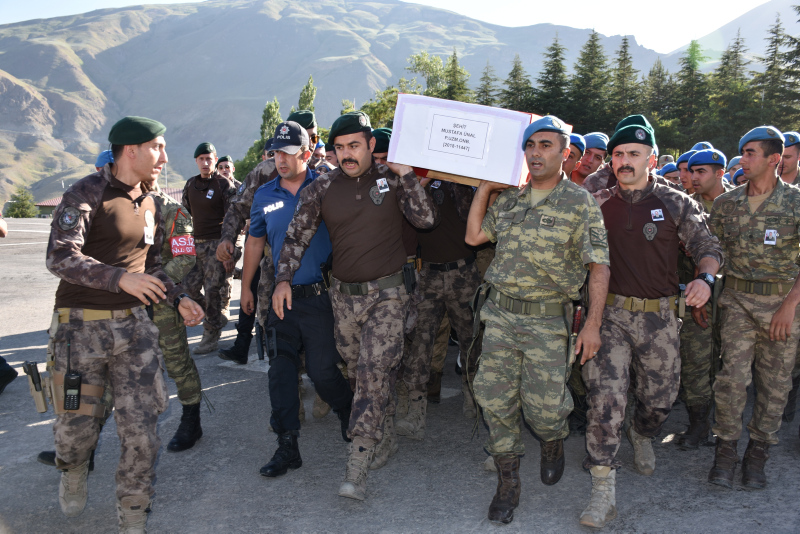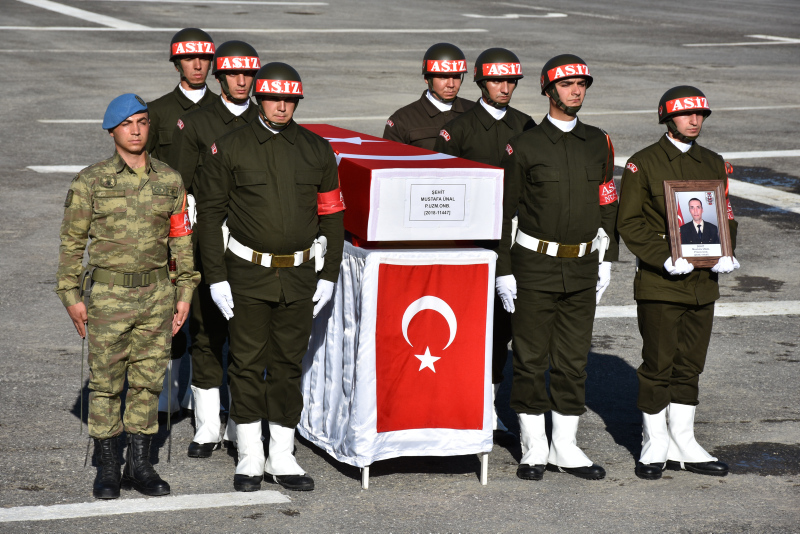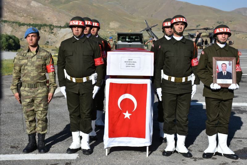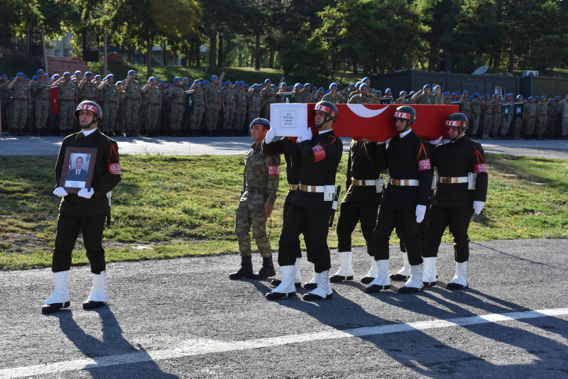 Dağ ve Komando Tugay Komutanlığındaki törende, şehit piyade uzman onbaşı Mustafa Ünal'ın, Türk bayrağına sarılı naaşı alana getirildi.