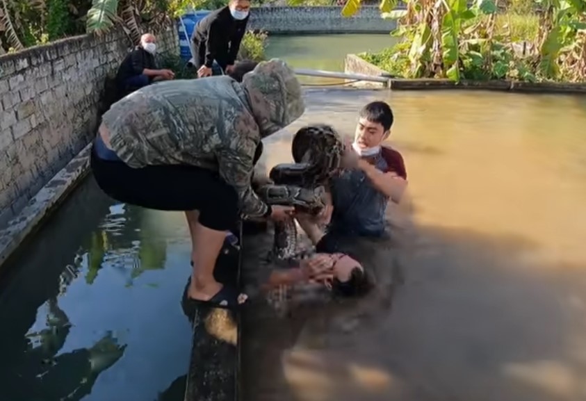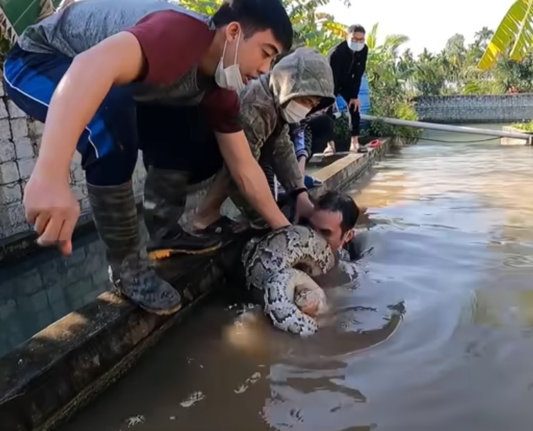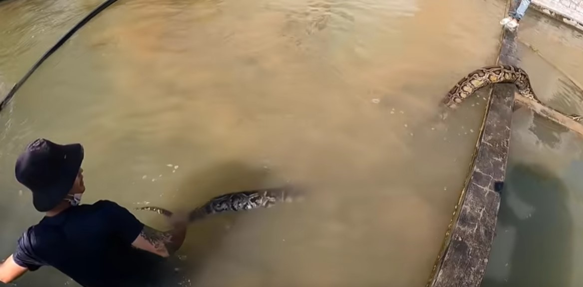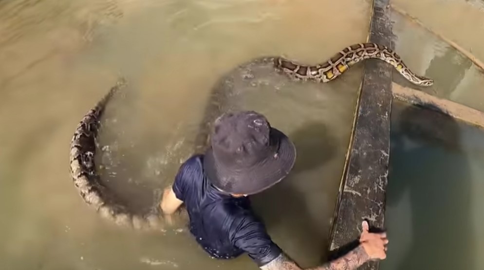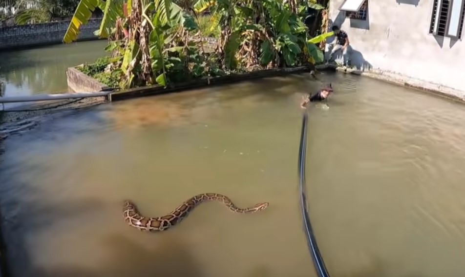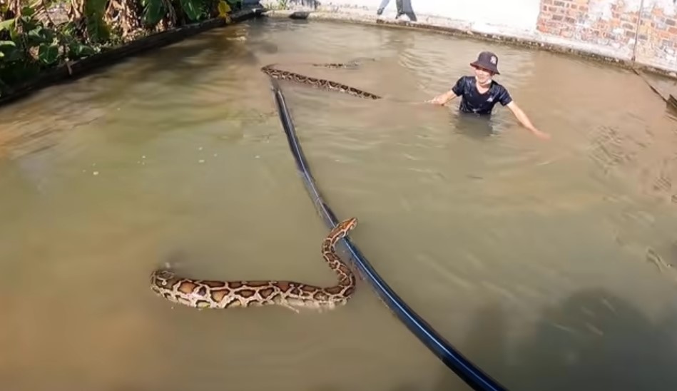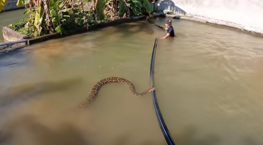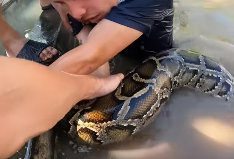 Bir grup arkadaş terk edilmiş su havuzunda iki tane dev piton yılanı gördü. Arkadaşlarına haber veren genç suya atlayıp pitonu yakalamaya çalıştı. Dev piton yakaladığı adamı suyun altına götürürken arkadaşları müdahale ederek kurtardı.